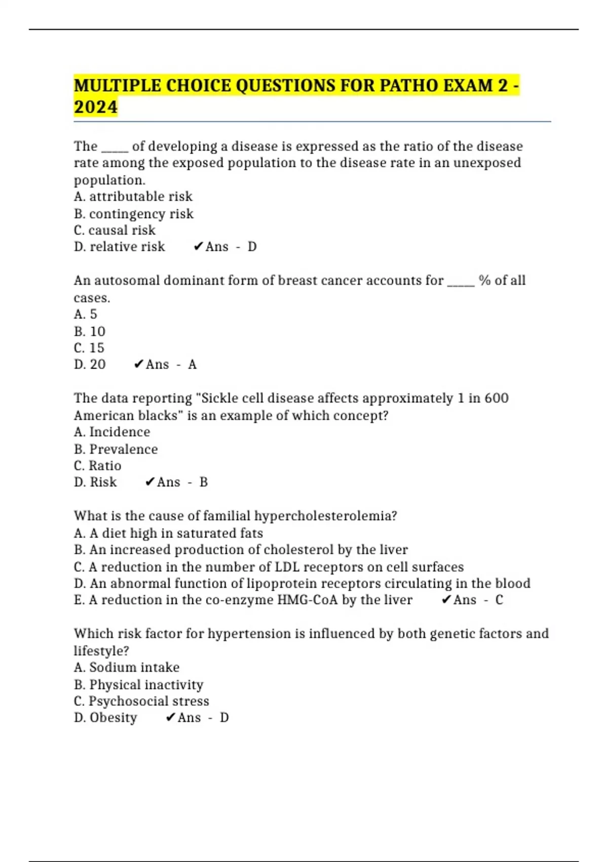 MULTIPLE CHOICE QUESTIONS FOR PATHO EXAM 2 -2024