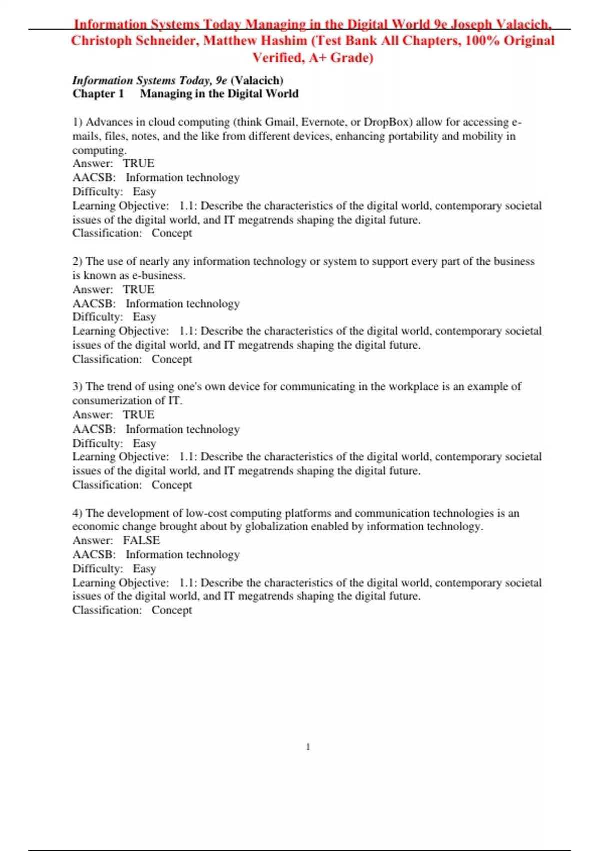 Test Bank For Information Systems Today Managing in the Digital World 9th Edition By Joseph Valacich, Christoph Schneider, Matthew Hashim (All Chapters, 100% Original Verified, A+ Grade) Test Bank For Information Systems Today Managing in the Digital World 9e By Joseph Valacich, Christoph Schneider, Matthew Hashim (All Chapters, 100% Original Verified, A+ Grade)