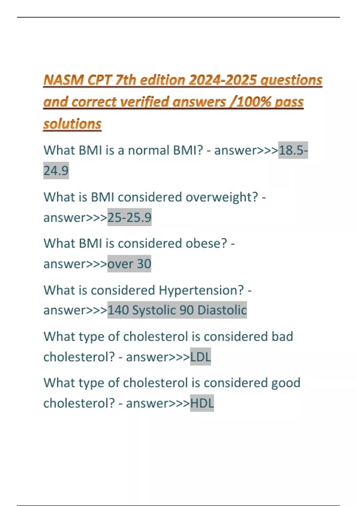 NASM CPT 7th edition questions and correct verified answers /100% pass solutions
