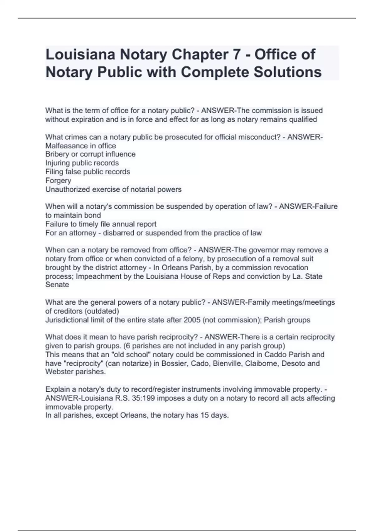 louisiana notary chapter 7 stuvia