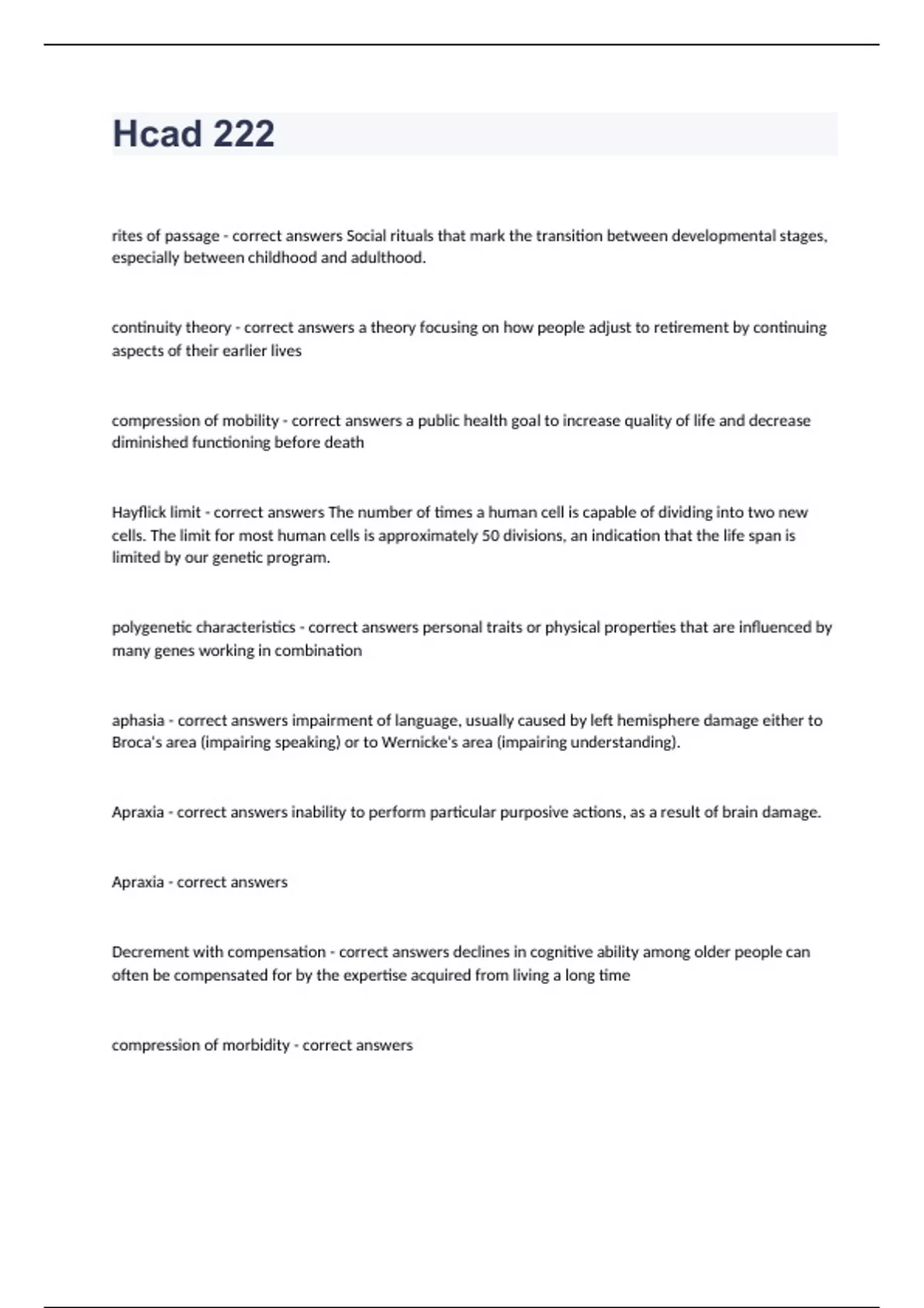 Hcad 222 questions with completed solutions 2024