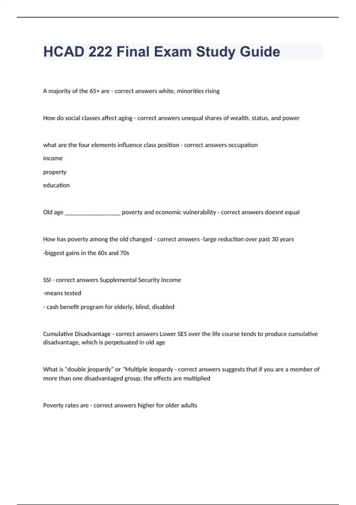 HCAD 222 Final Exam Study Guide questions and answers verified 2024