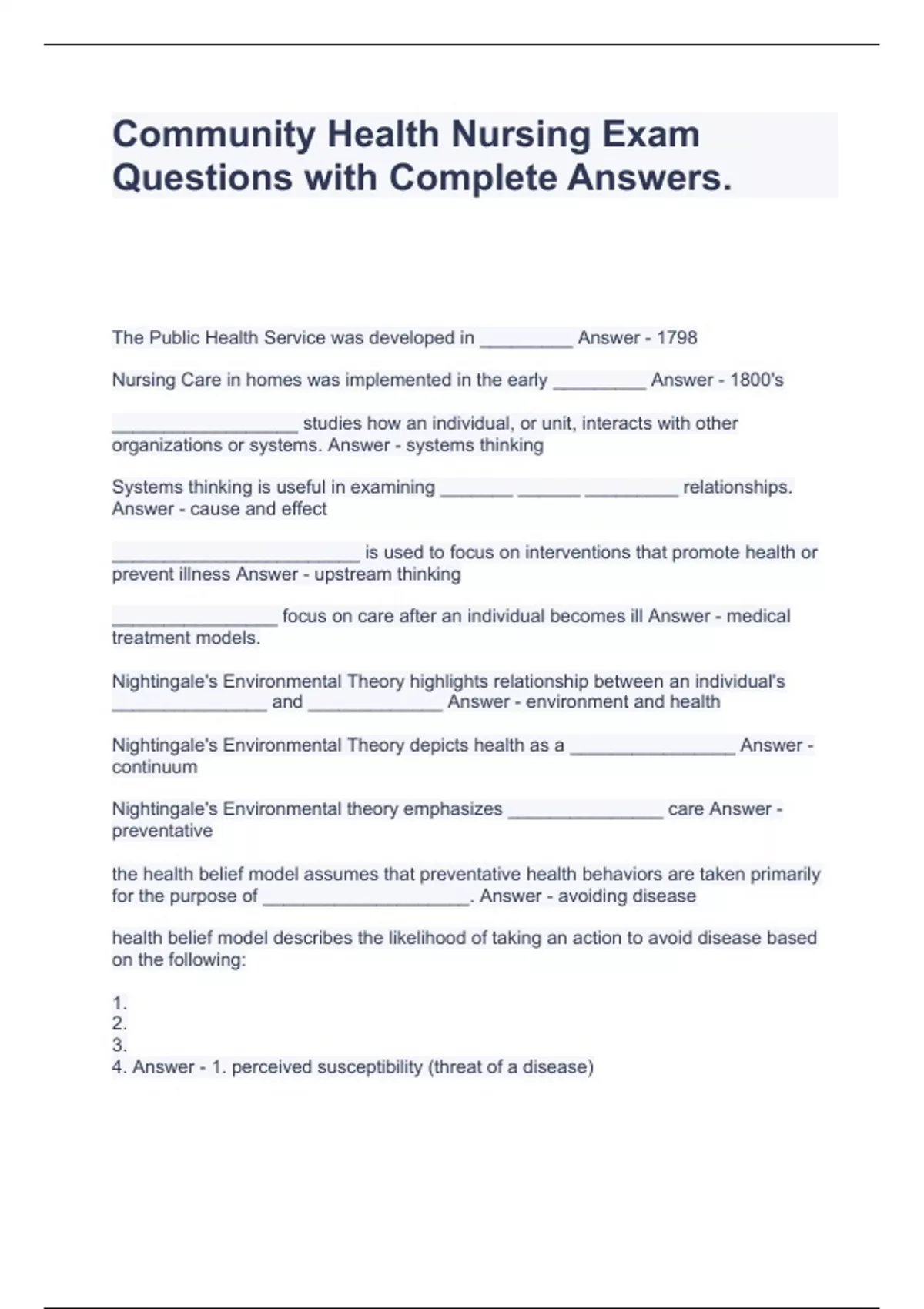 Community Health Nursing Exam Questions with Complete Answers
