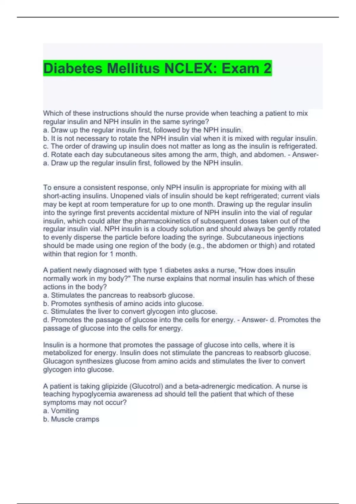 Diabetes Mellitus NCLEX Exam 2 with correct Answers