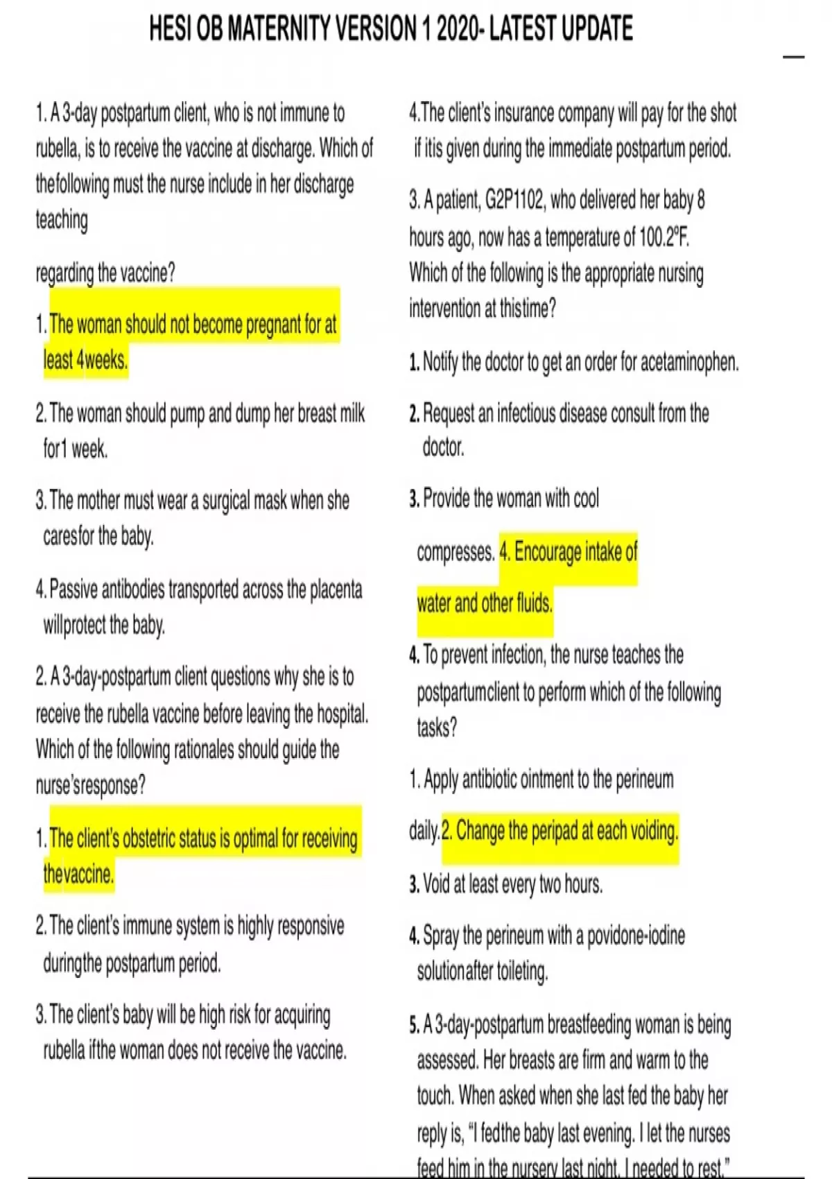 hesi ob maternity version 1 2020 latest update