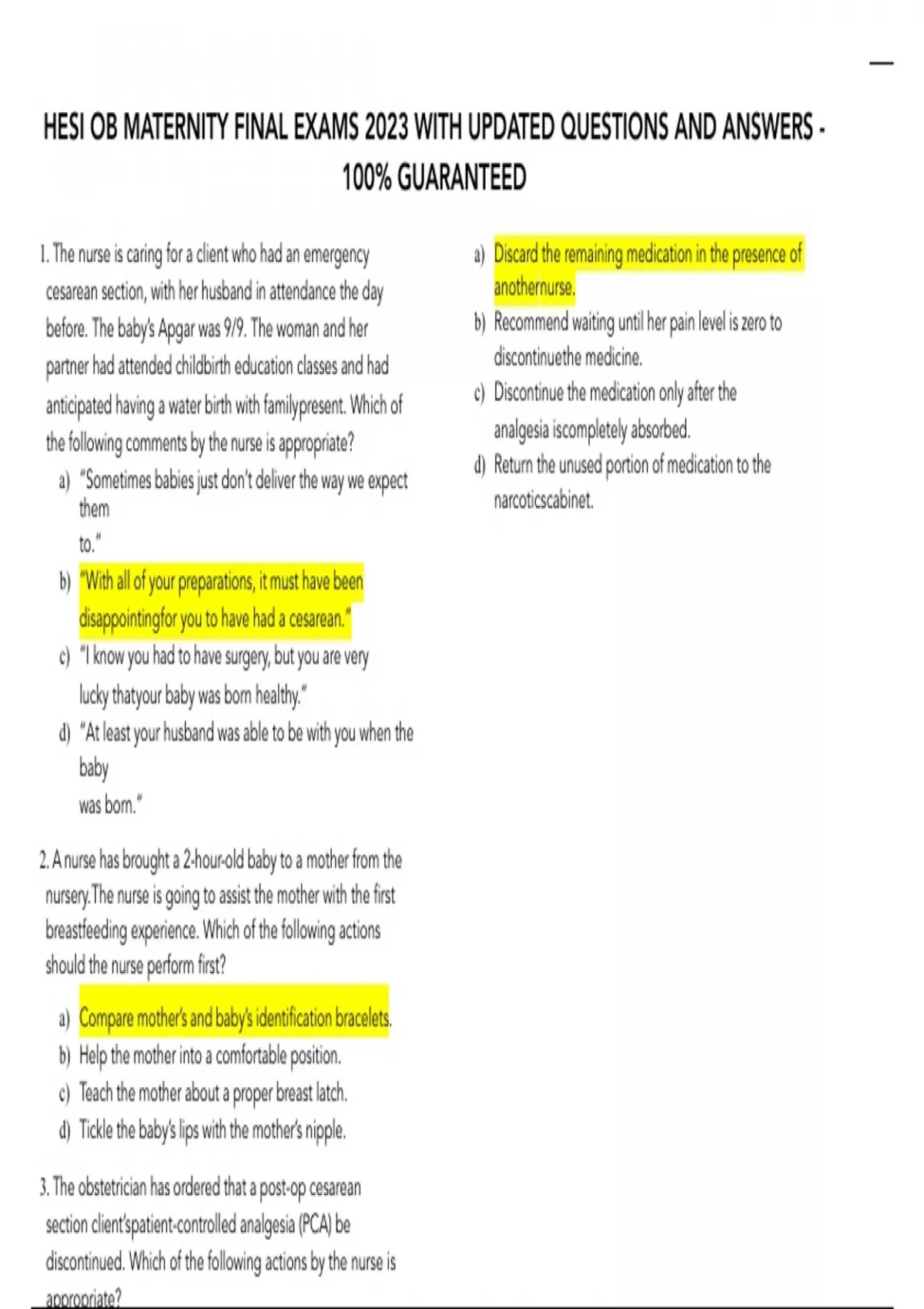 HESI OB MATERNITY FINAL EXAMS 2023 WITH UPDATED QUESTIONS AND ANSWERS - 100% GUARANTEED
