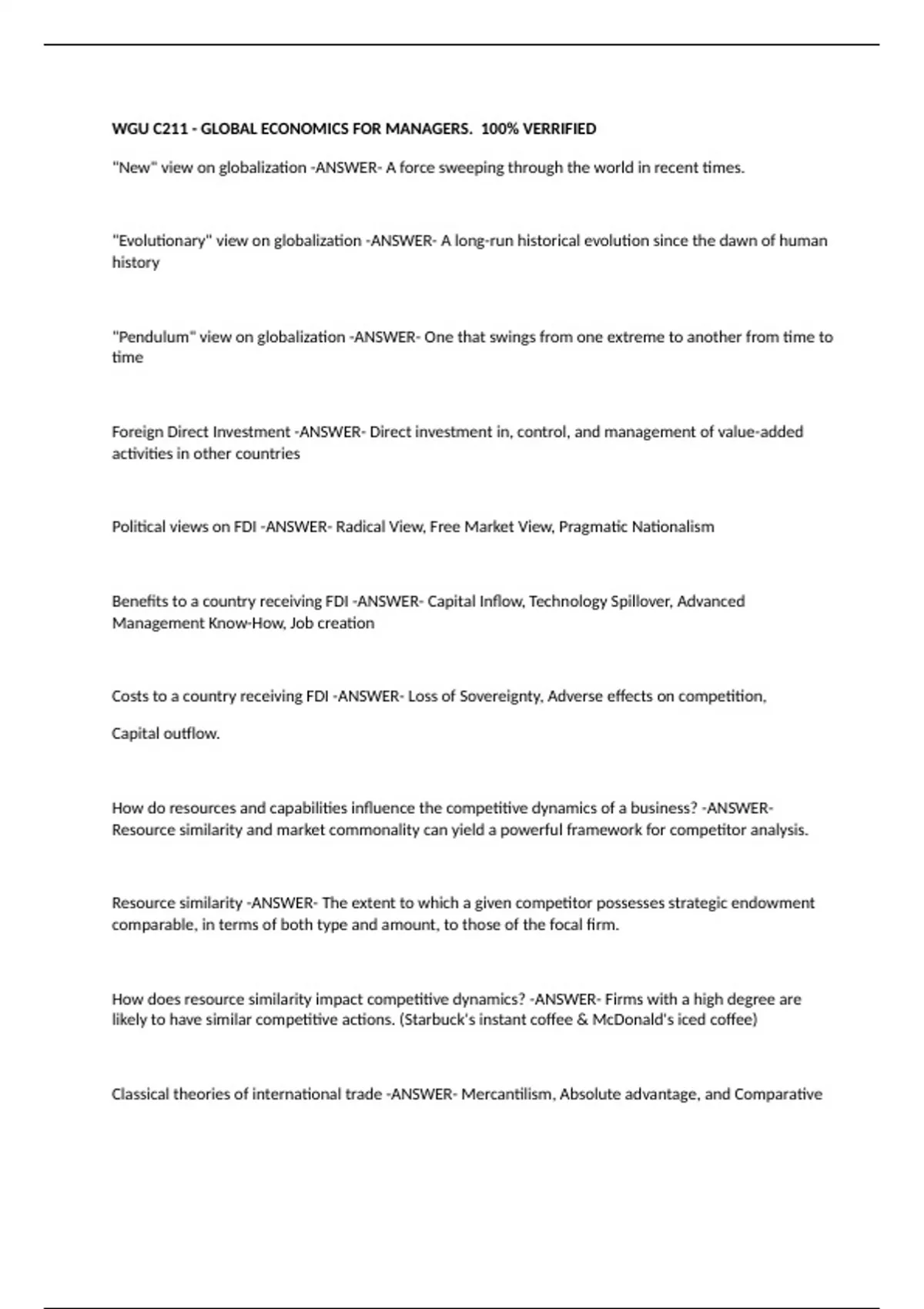 WGU C211 - GLOBAL ECONOMICS FOR MANAGERS. 100% VERRIFIED