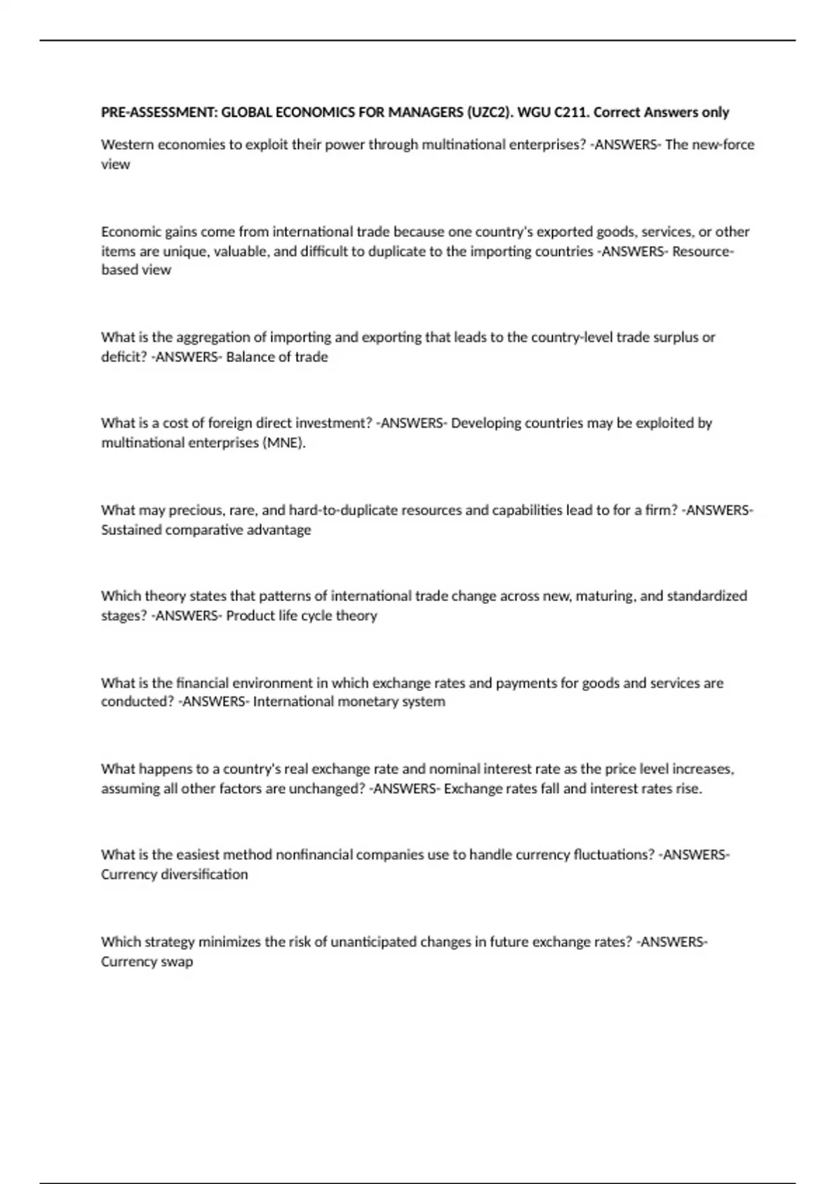 WGU C211 - GLOBAL ECONOMICS FOR MANAGERS. 100% VERRIFIED