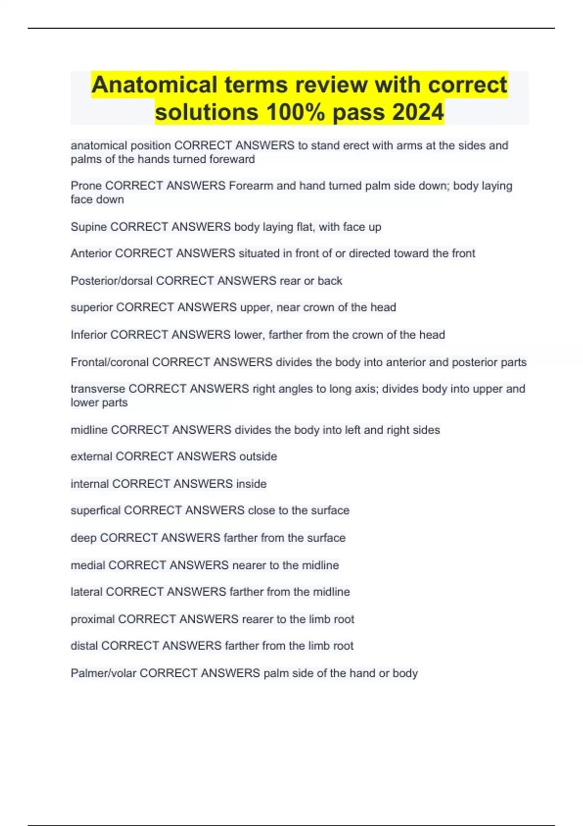Anatomical terms review with correct solutions 100% pass 2024
