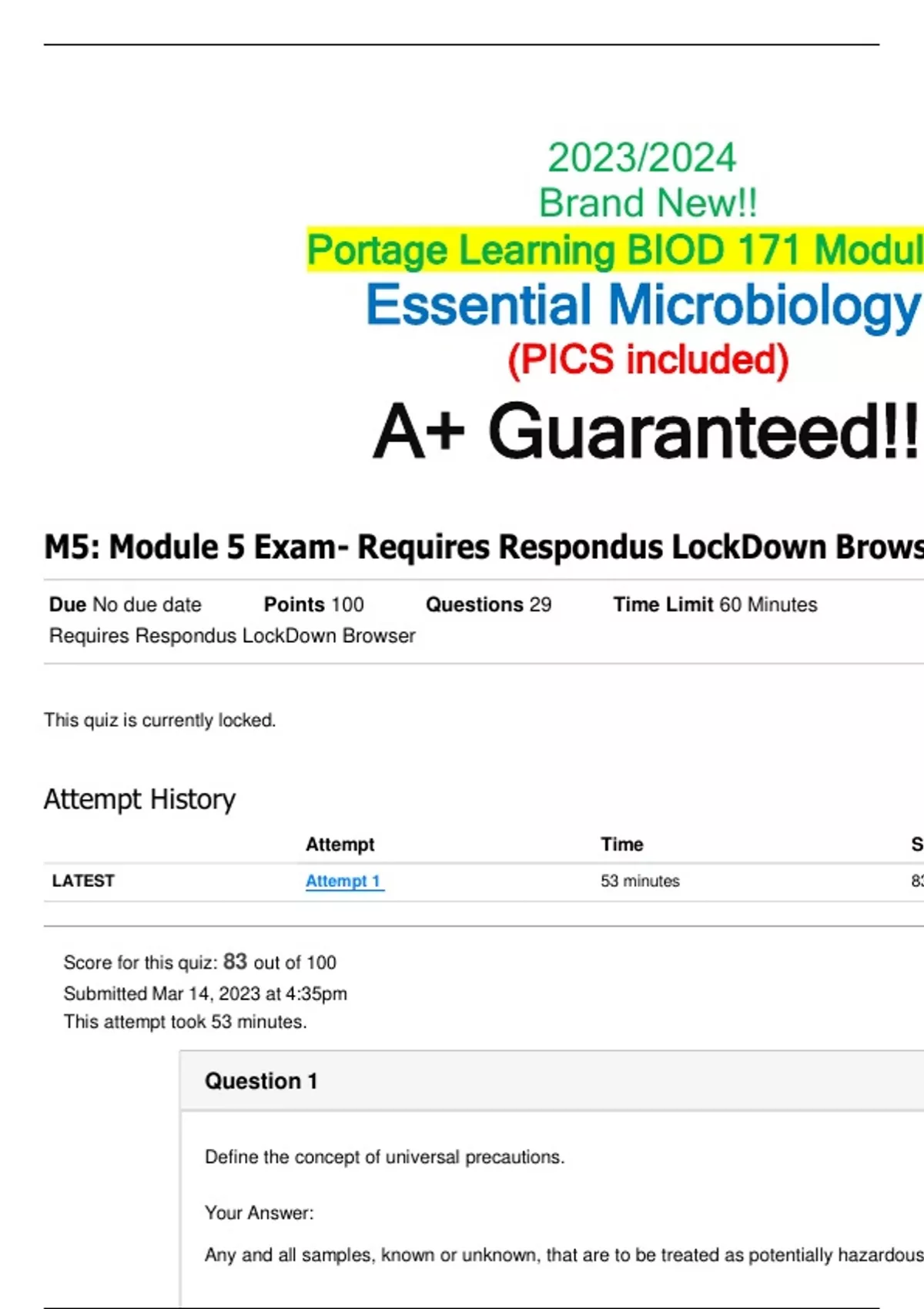 Portage Learning BIOD 171 Module 5 Exam || Essential Microbiology Updated 2024 (PICS included) A+ Guaranteed!! Brand New!!