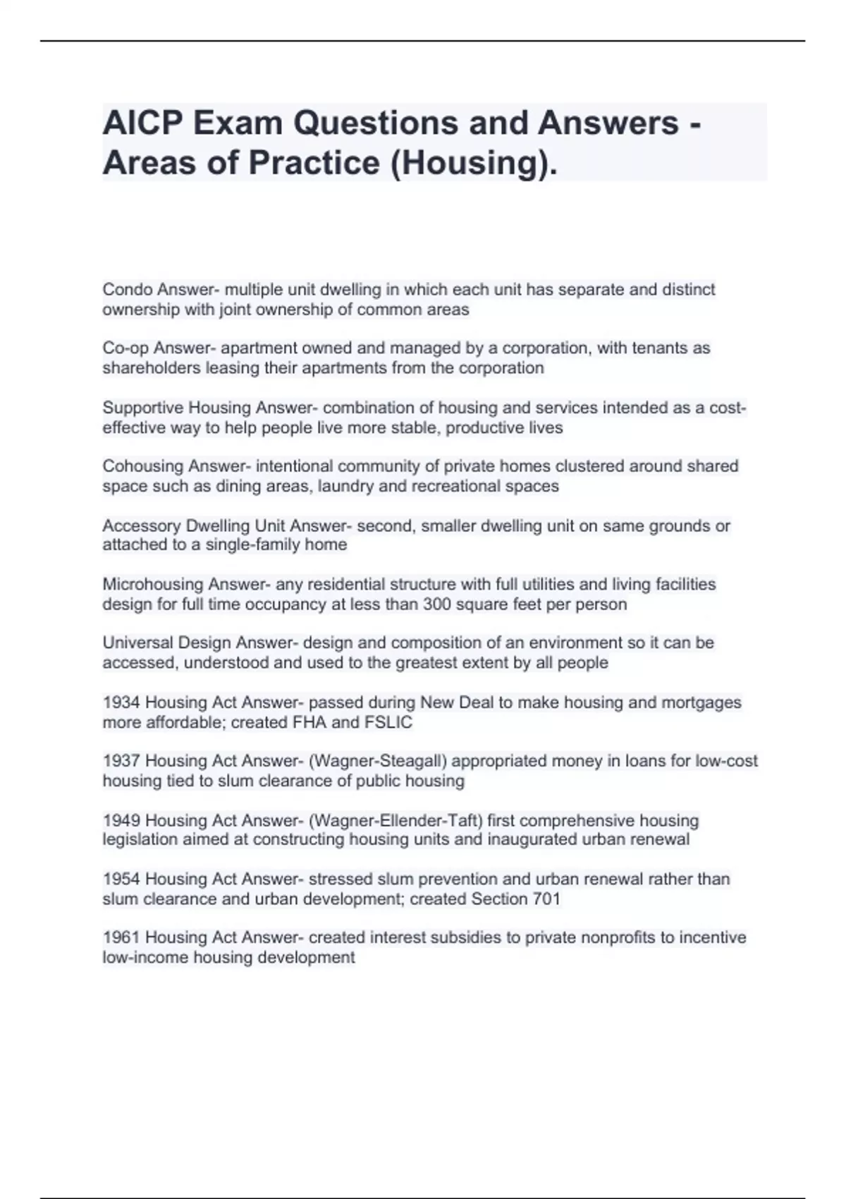 AICP Exam Questions and Answers - Areas of Practice (Housing).