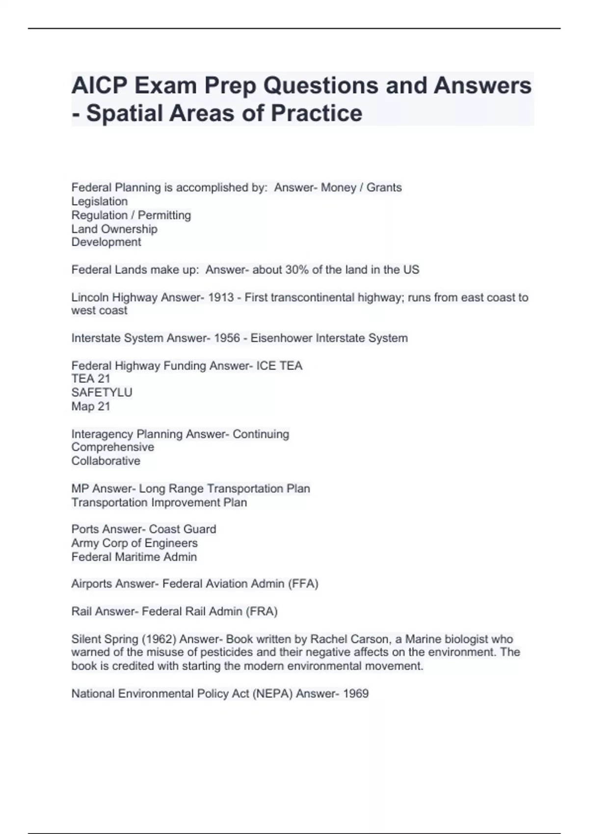 AICP Exam Prep Questions and Answers - Spatial Areas of Practice