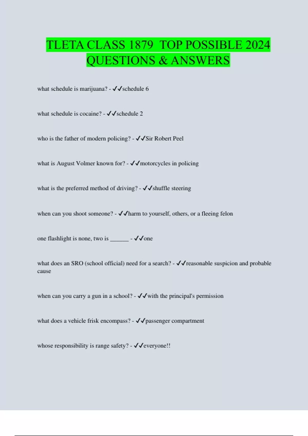 TLETA CLASS 1879 TOP POSSIBLE 2024 QUESTIONS & ANSWERS