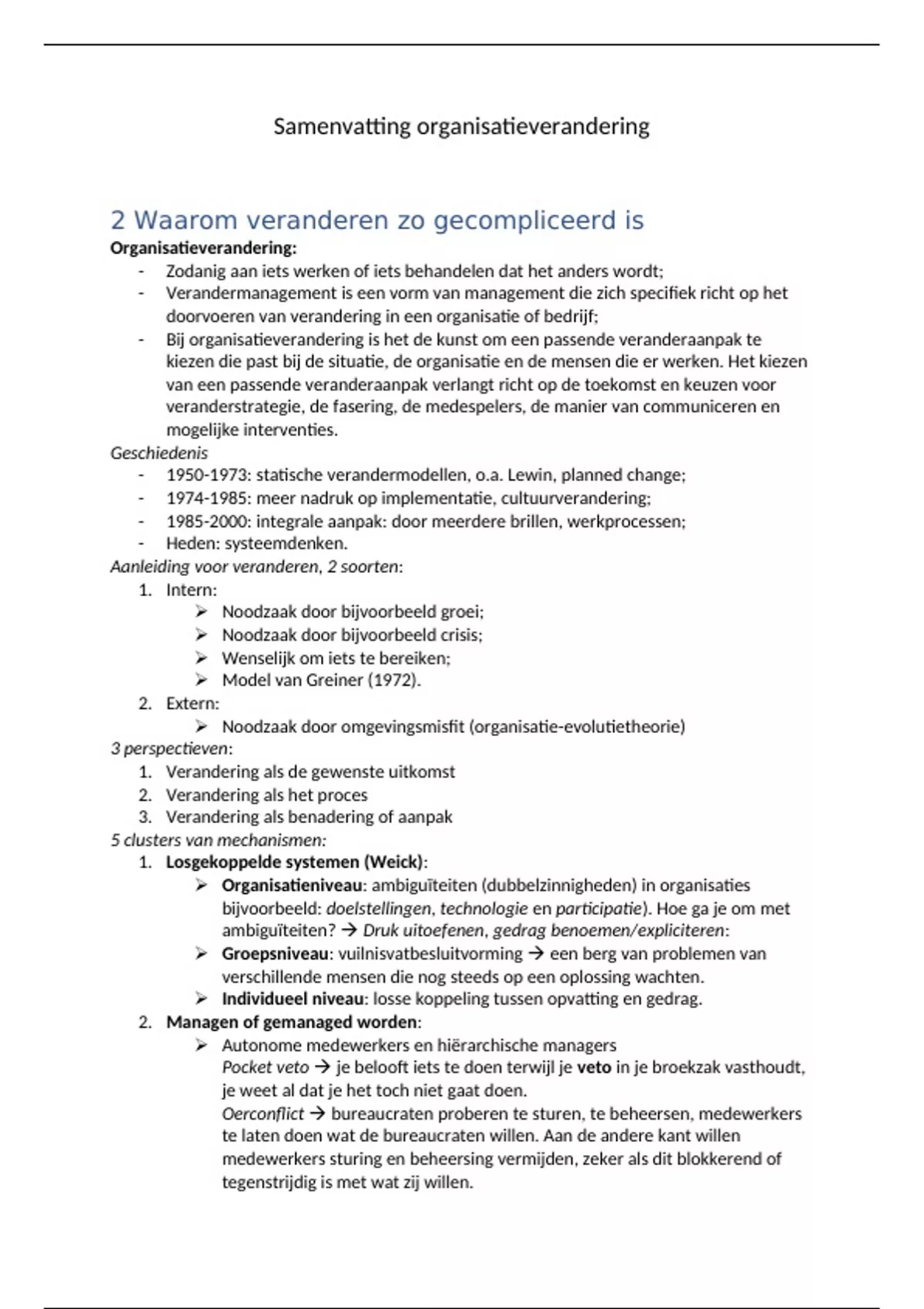 Samenvatting organisatieverandering