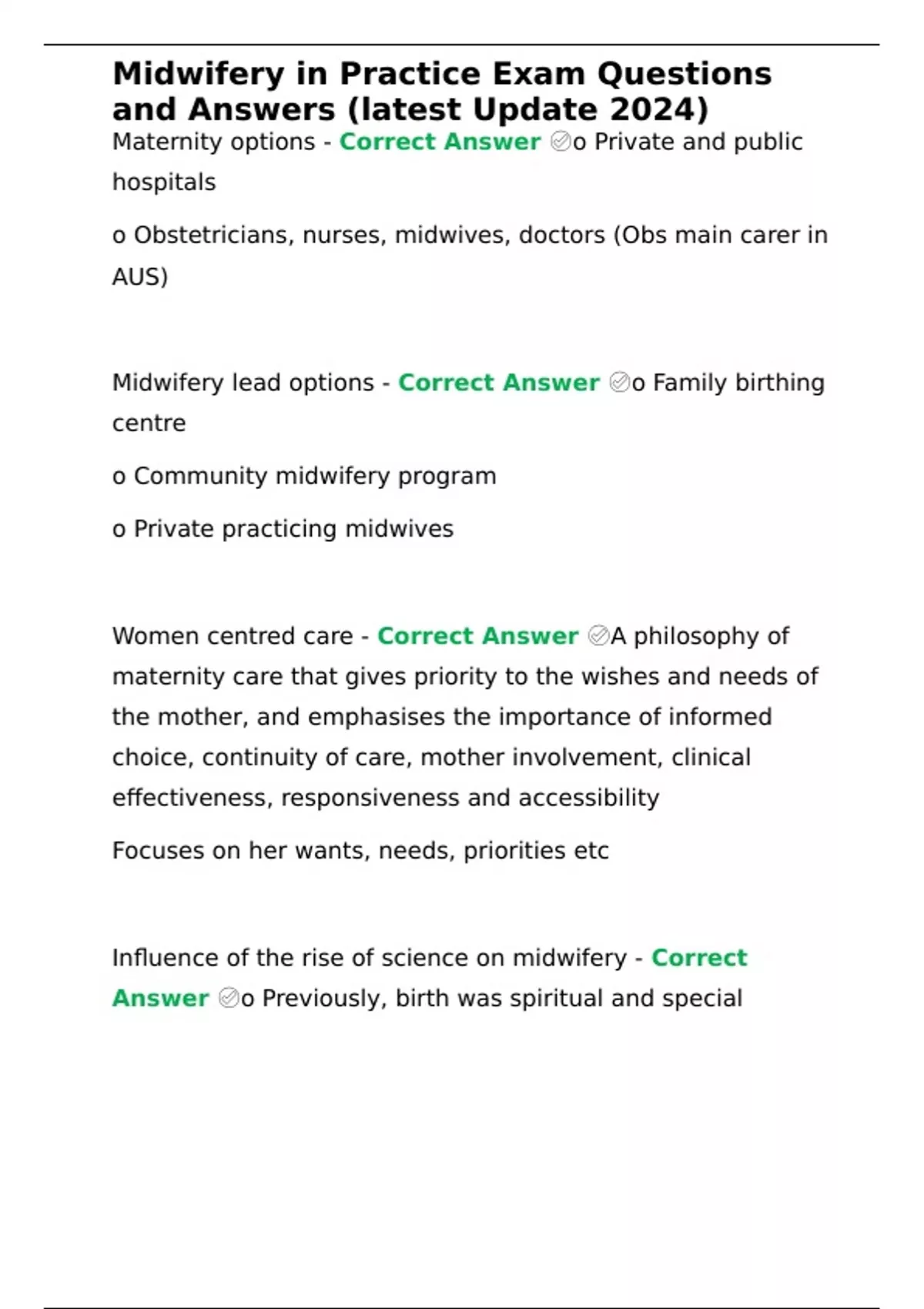 Midwifery in Practice Exam Questions and Answers (latest Update 2024)