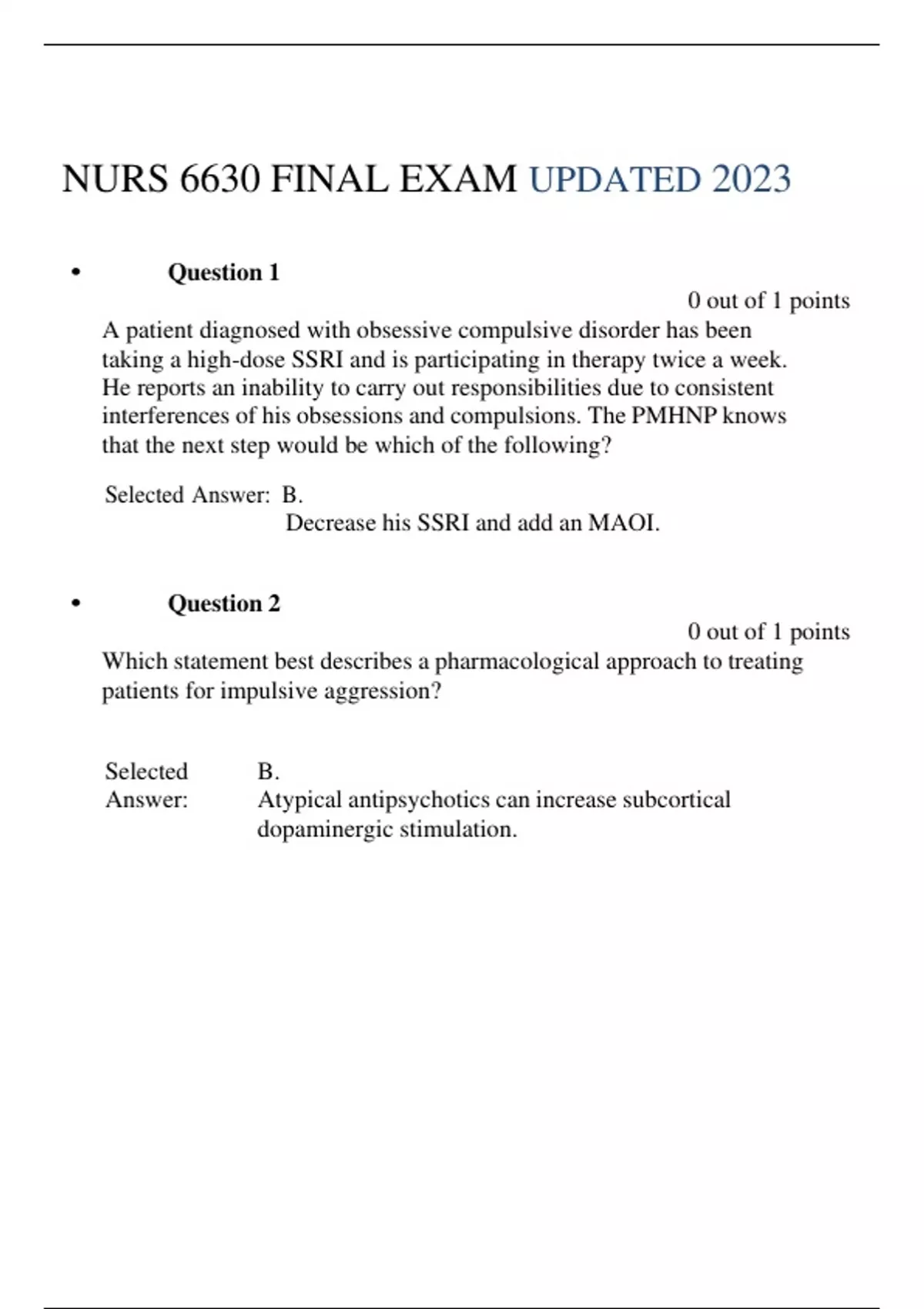 nurs 6630 final exam latest 2023 latest update