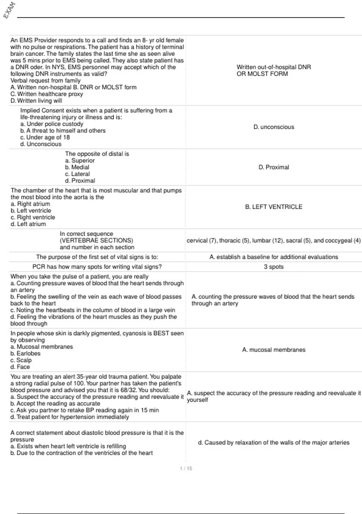 NEW YORK STATE EMERGENCY MEDICAL TECHNICIAN (NYS EMT) QUESTIONS & ANSWERS
