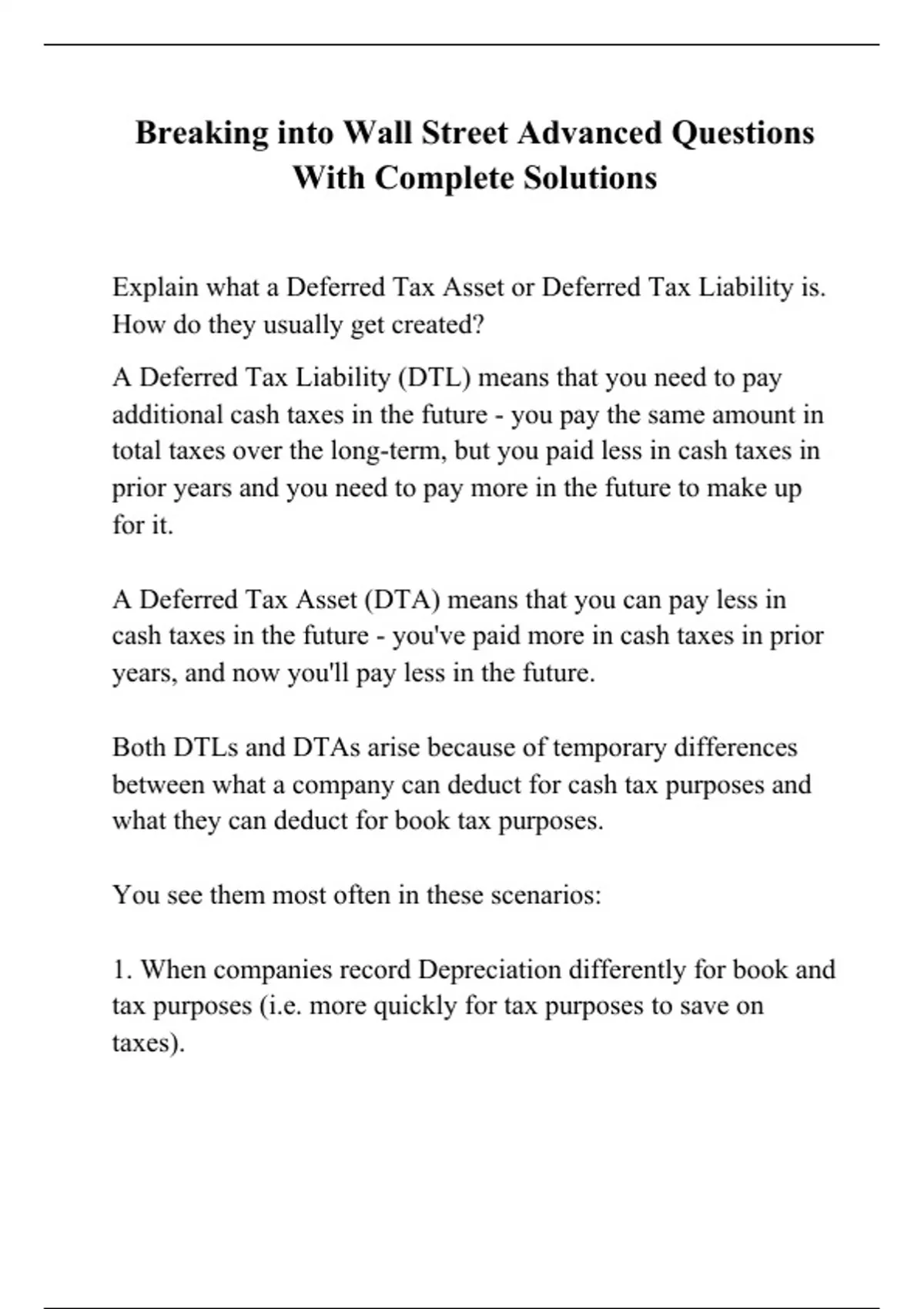 Breaking into Wall Street Advanced Questions With Complete Solutions
