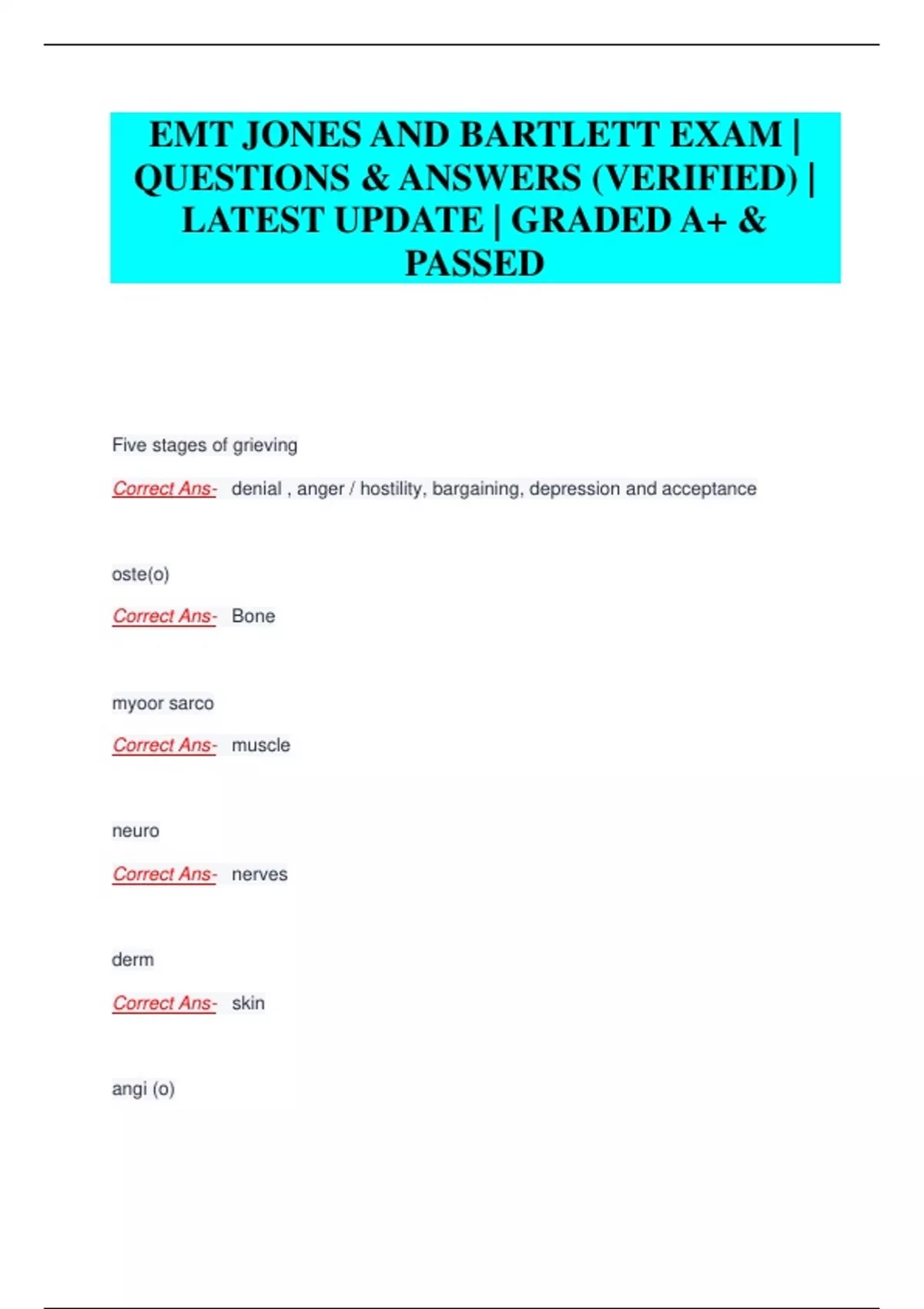 EMT JONES AND BARTLETT EXAM | QUESTIONS & ANSWERS (VERIFIED) | LATEST UPDATE | GRADED A+ & PASSED EMT JONES AND BARTLETT EXAM | QUESTIONS & ANSWERS (VERIFIED) | LATEST UPDATE | GRADED A+ & PASSED EMT JONES AND BARTLETT EXAM | QUESTIONS & ANSWERS (VERIFIED) | LATEST UPDATE | GRADED A+ & PASSED