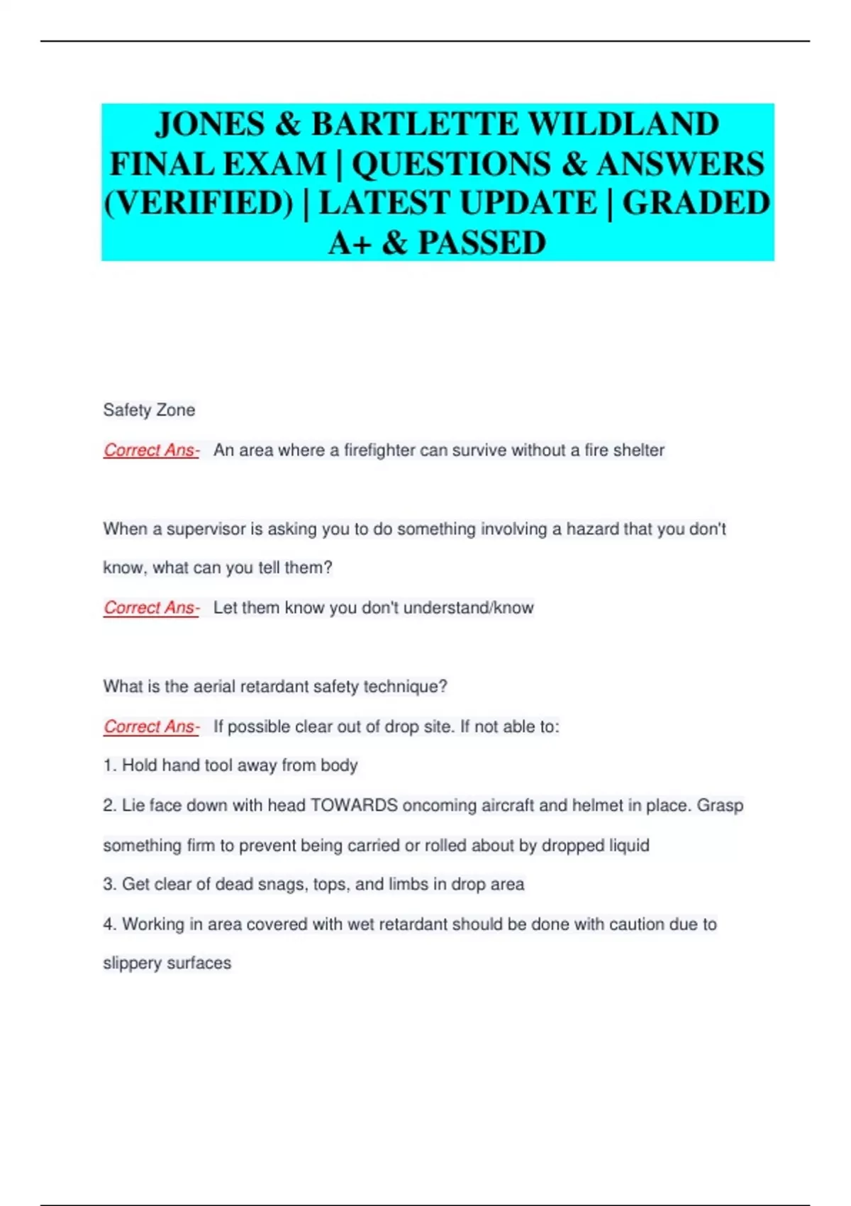 JONES & BARTLETTE WILDLAND FINAL EXAM | QUESTIONS & ANSWERS (VERIFIED) | LATEST UPDATE | GRADED A+ & PASSED
