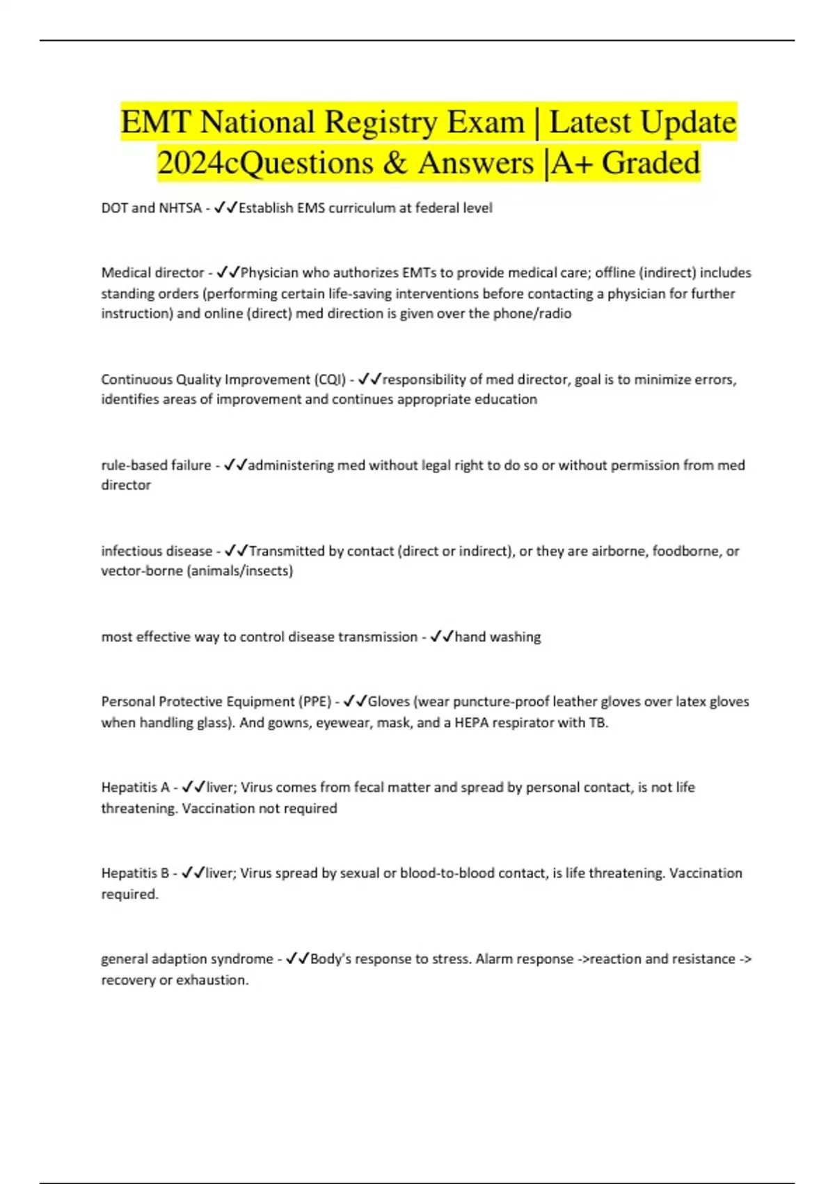 EMT National Registry Exam | Latest Update 2024cQuestions & Answers |A+ Graded