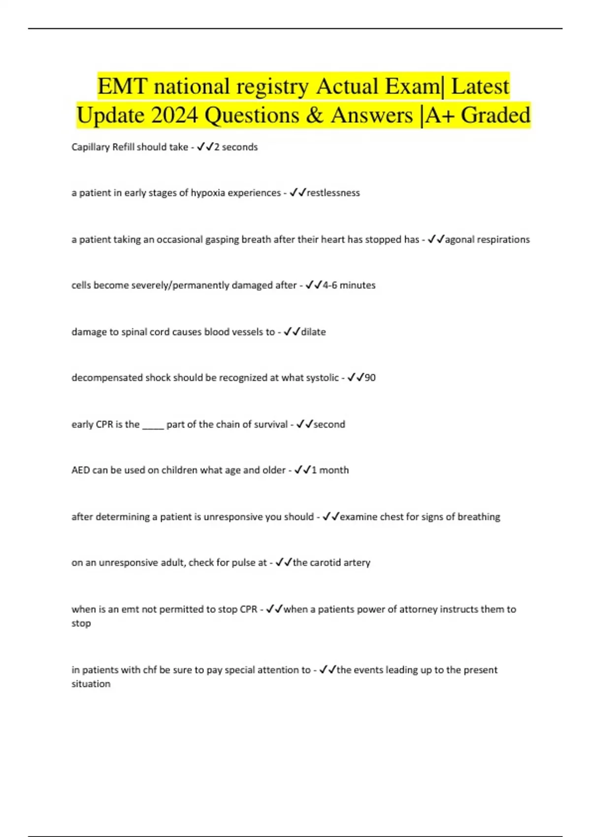 EMT national registry Actual Exam| Latest Update 2024 Questions & Answers |A+ Graded