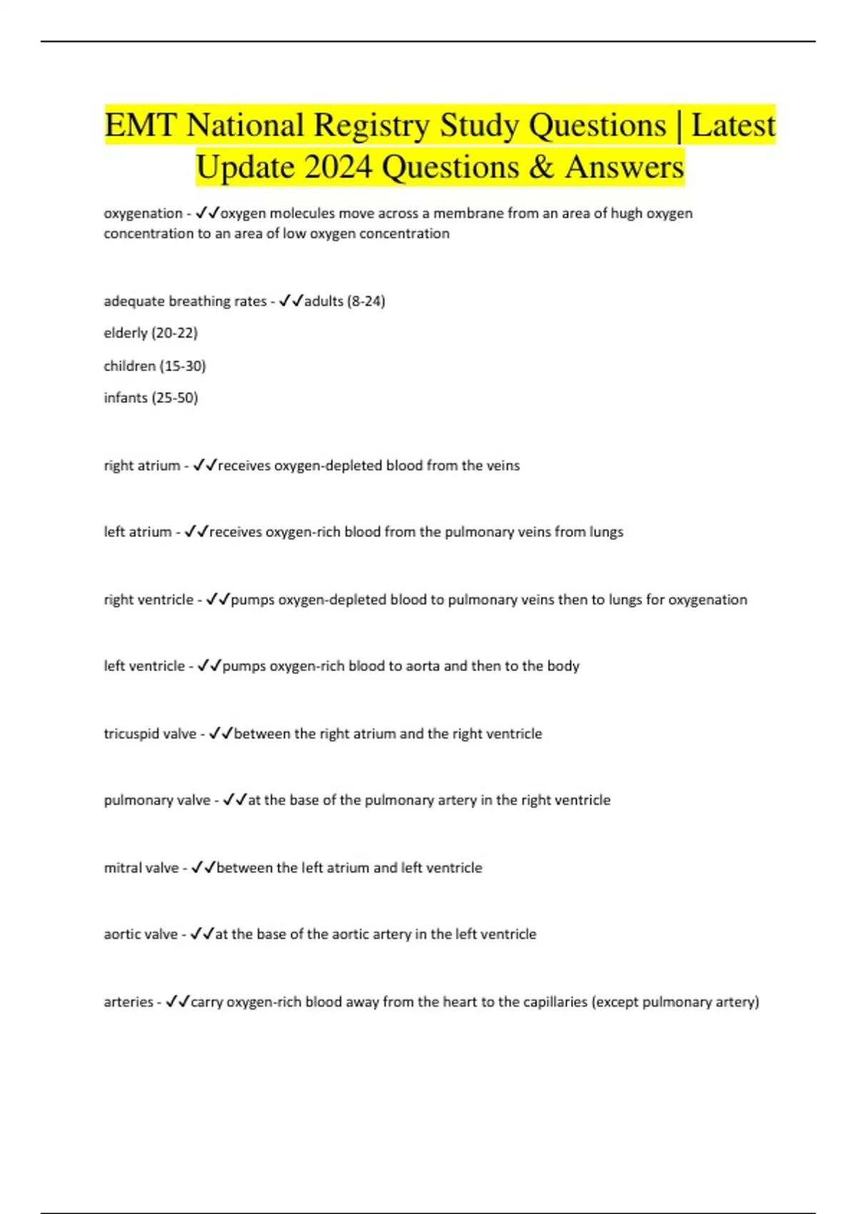 EMT National Registry Study Questions | Latest Update 2024 Questions & Answers