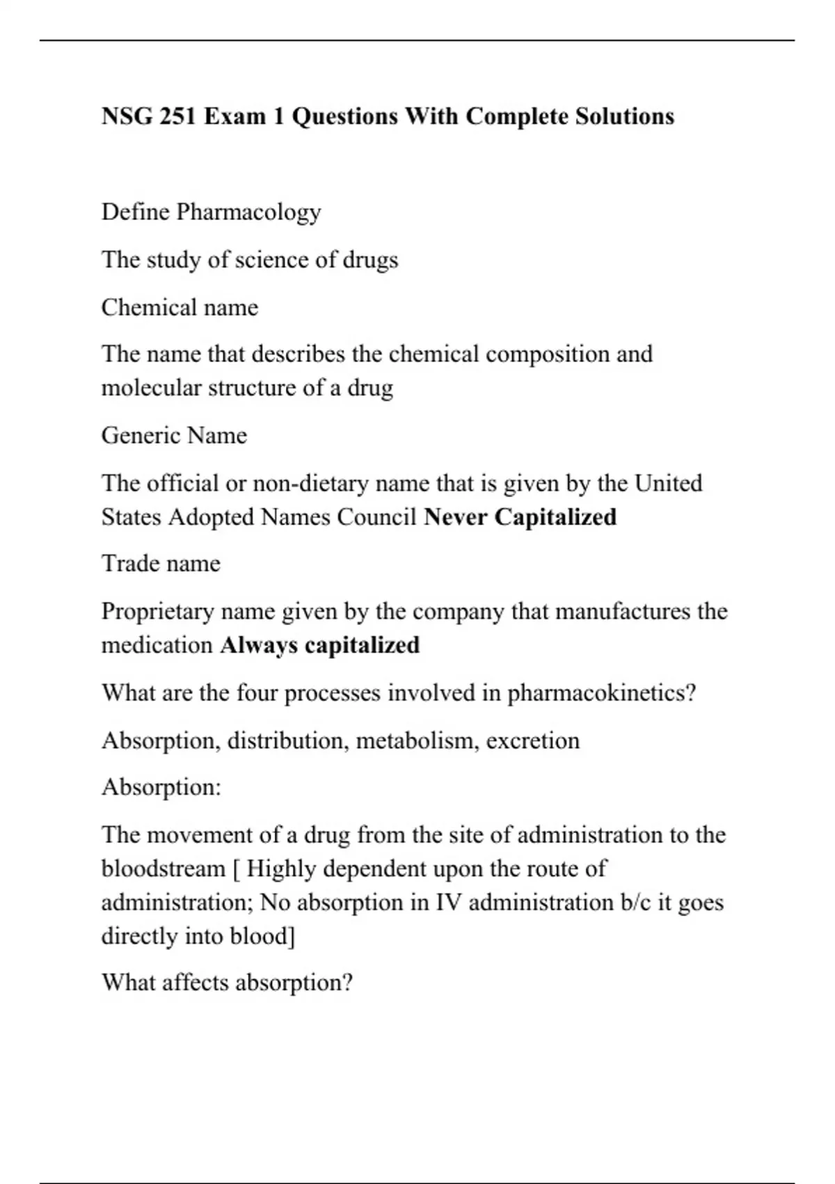NSG 251 Exam 1 Questions With Complete Solutions