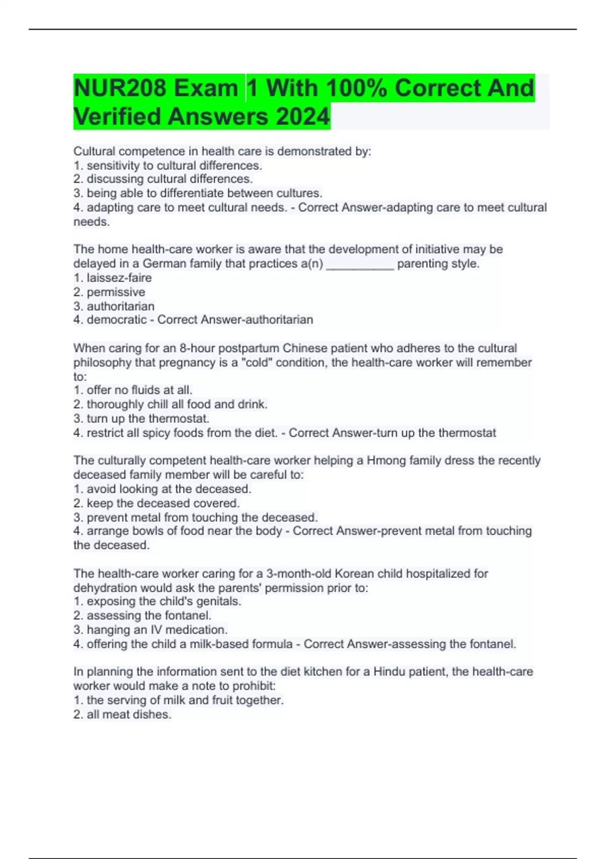 NUR208 Exam 1 With 100% Correct And Verified Answers 2024