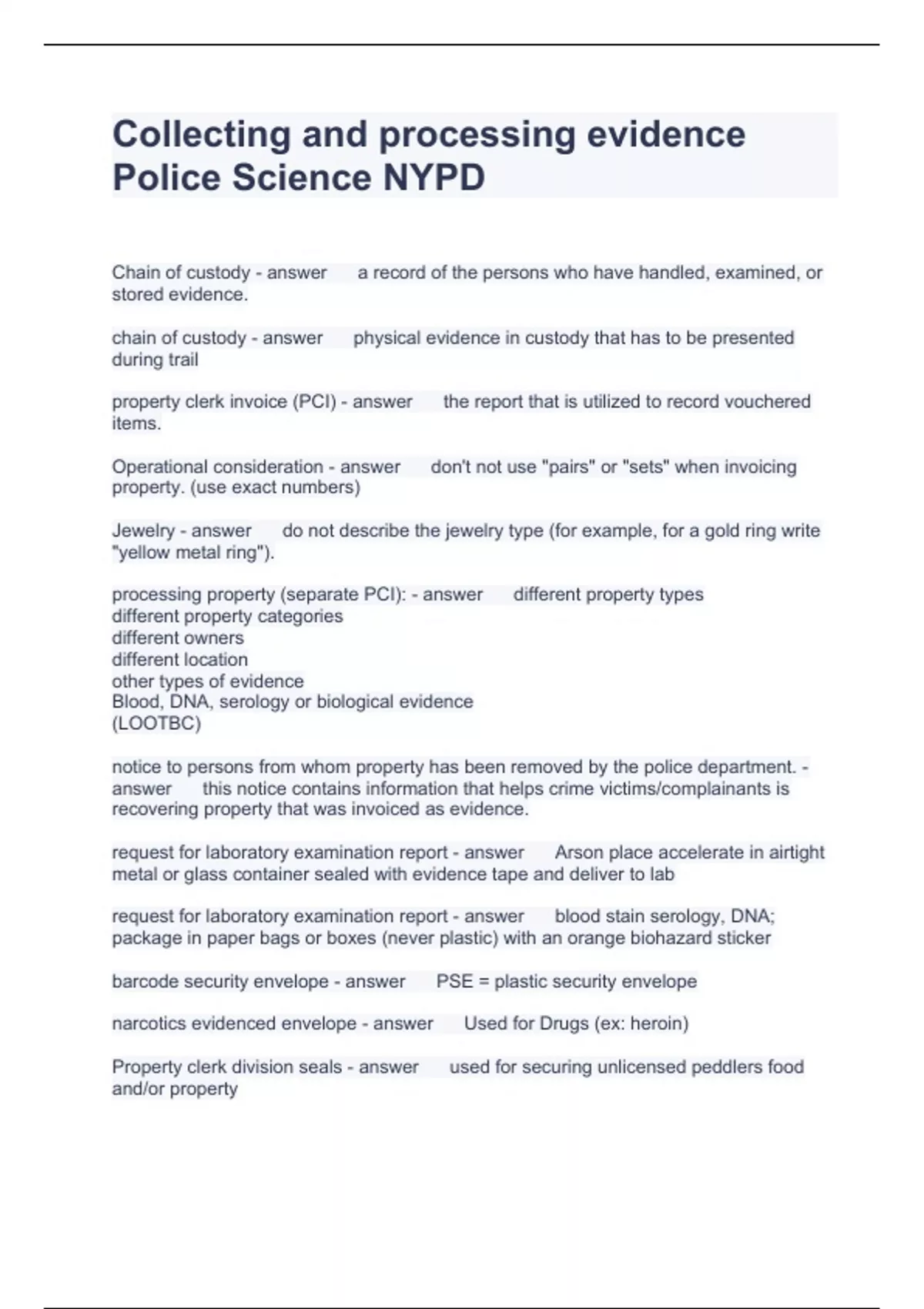 Collecting and processing evidence Police Science NYPD Questions and Answers 2024