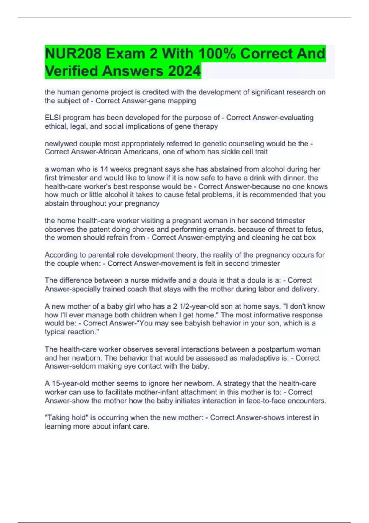NUR208 Exam 2 With 100% Correct And Verified Answers 2024