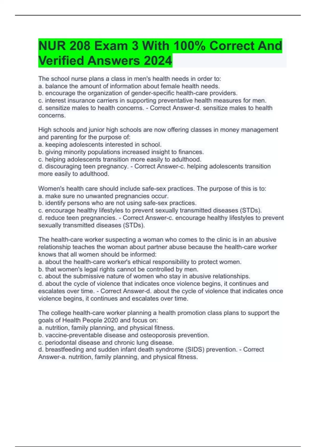 NUR 208 Exam 3 With 100% Correct And Verified Answers 2024