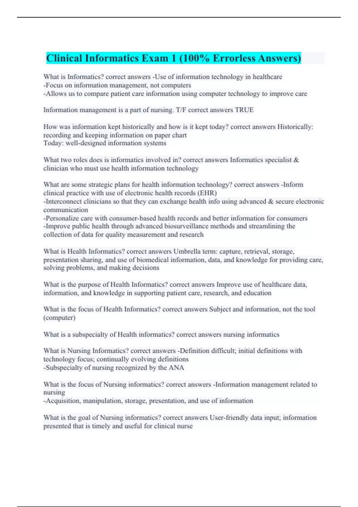 Clinical Informatics Exam 1 (100% Errorless Answers)