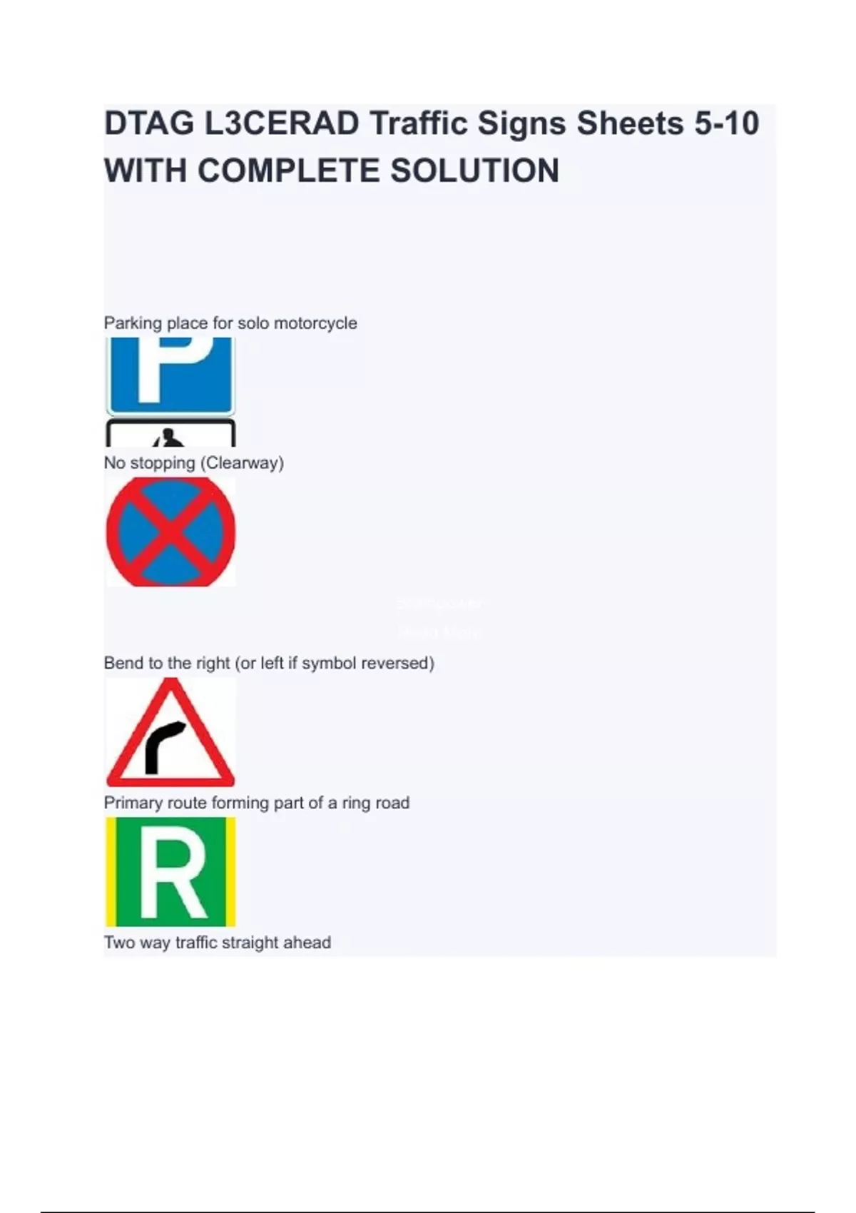 DTAG L3CERAD Traffic Signs Sheets 5-10 WITH COMPLETE SOLUTION