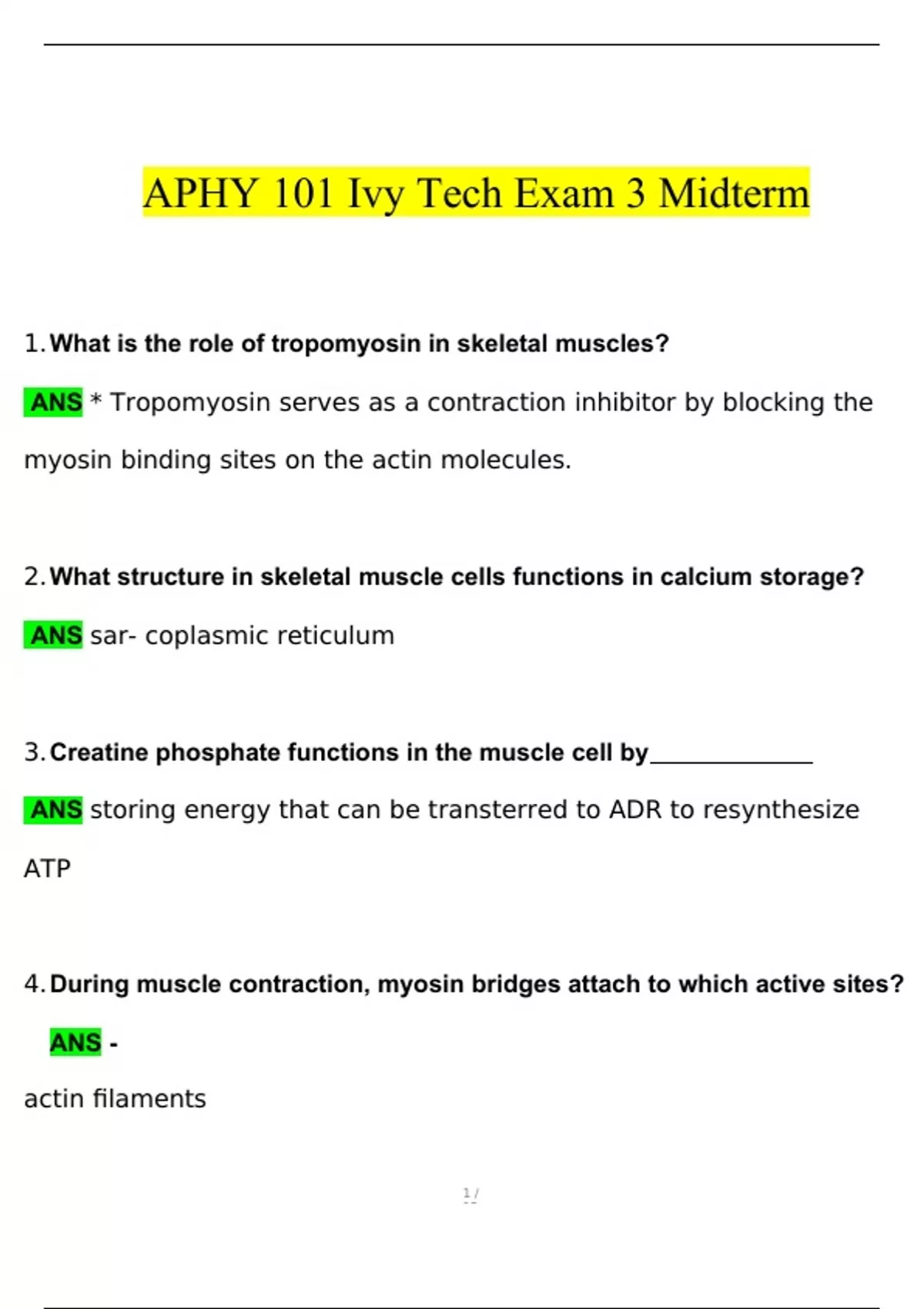 Ivy Tech Anatomy and Physiology 101 Exam 3 Midterm Questions and Answers 2024 / 2025 | 100% Verified Answers
