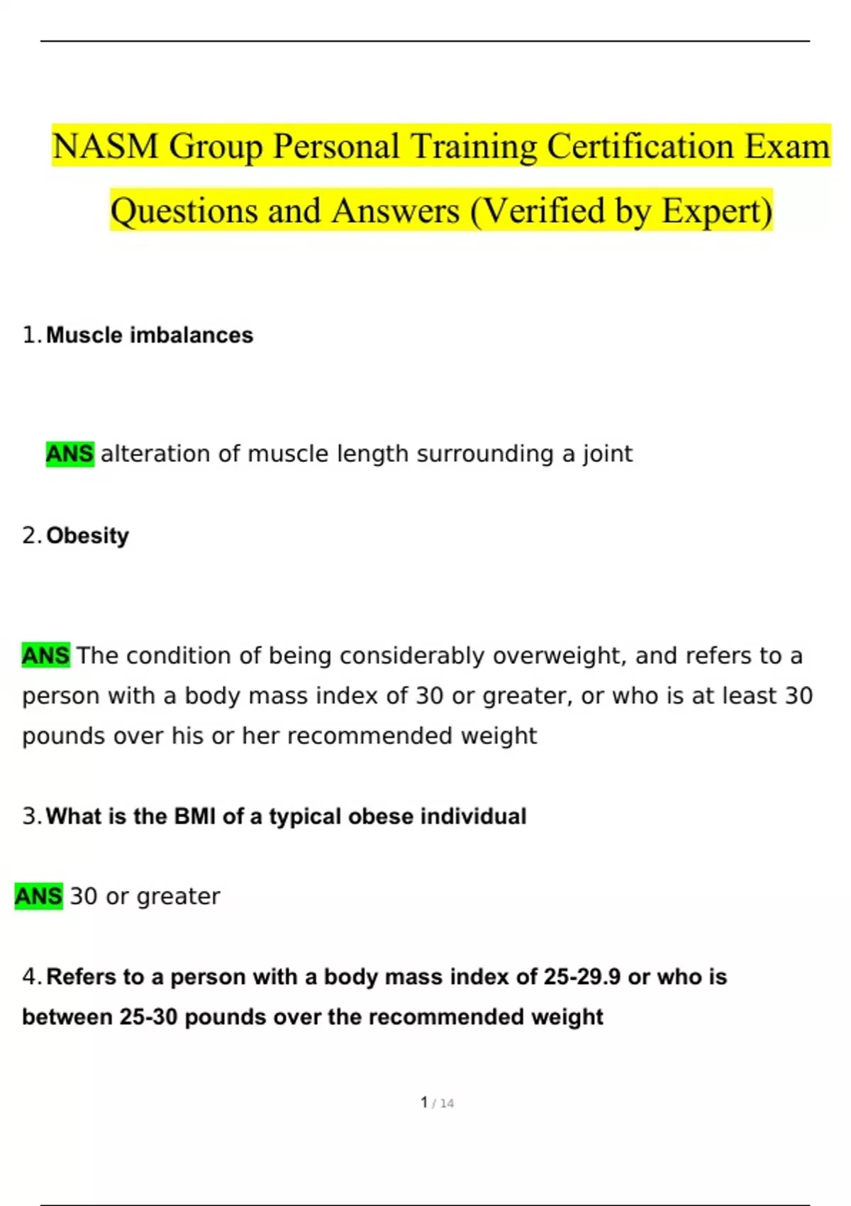 NASM Group Fitness Certification Exam Questions and Answers (2024 / 2025) (Verified Answers)