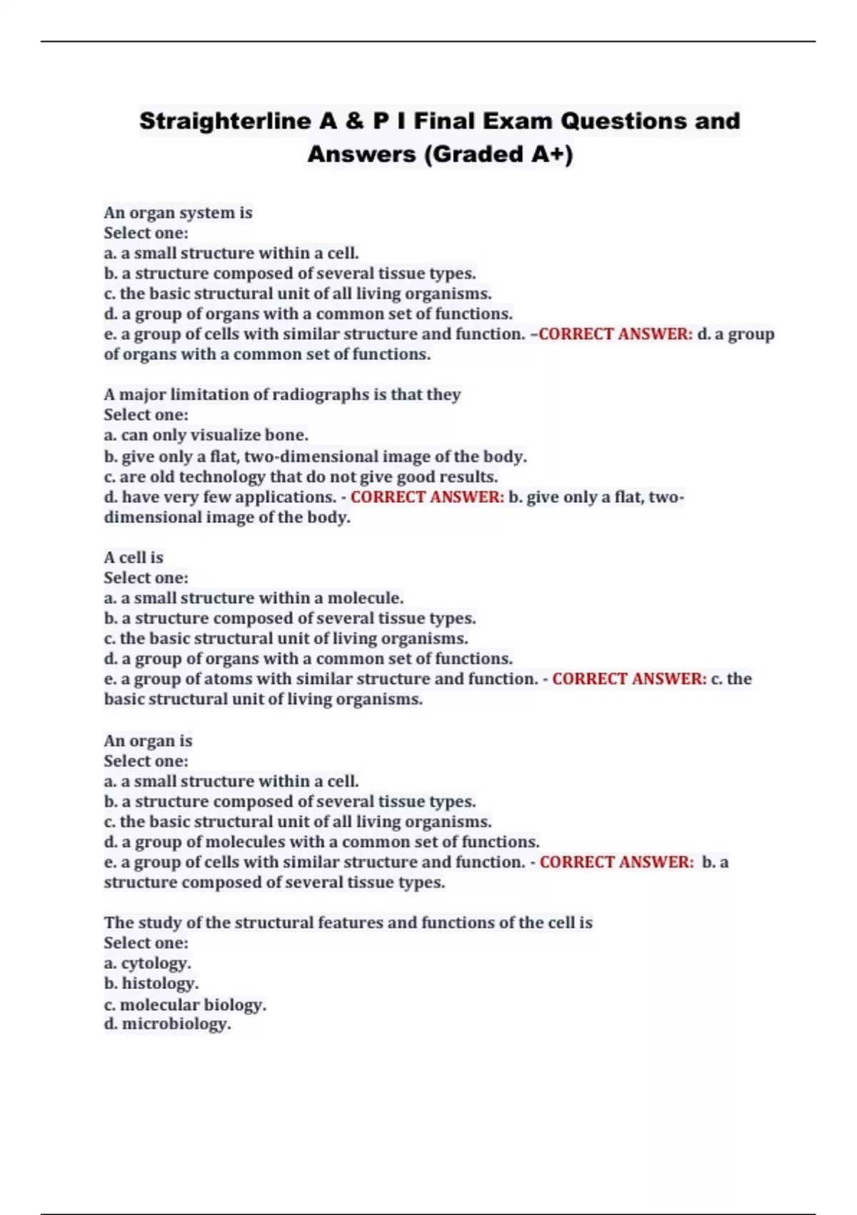 Straighterline A & P I Final Exam Questions and Answers (Graded A+)