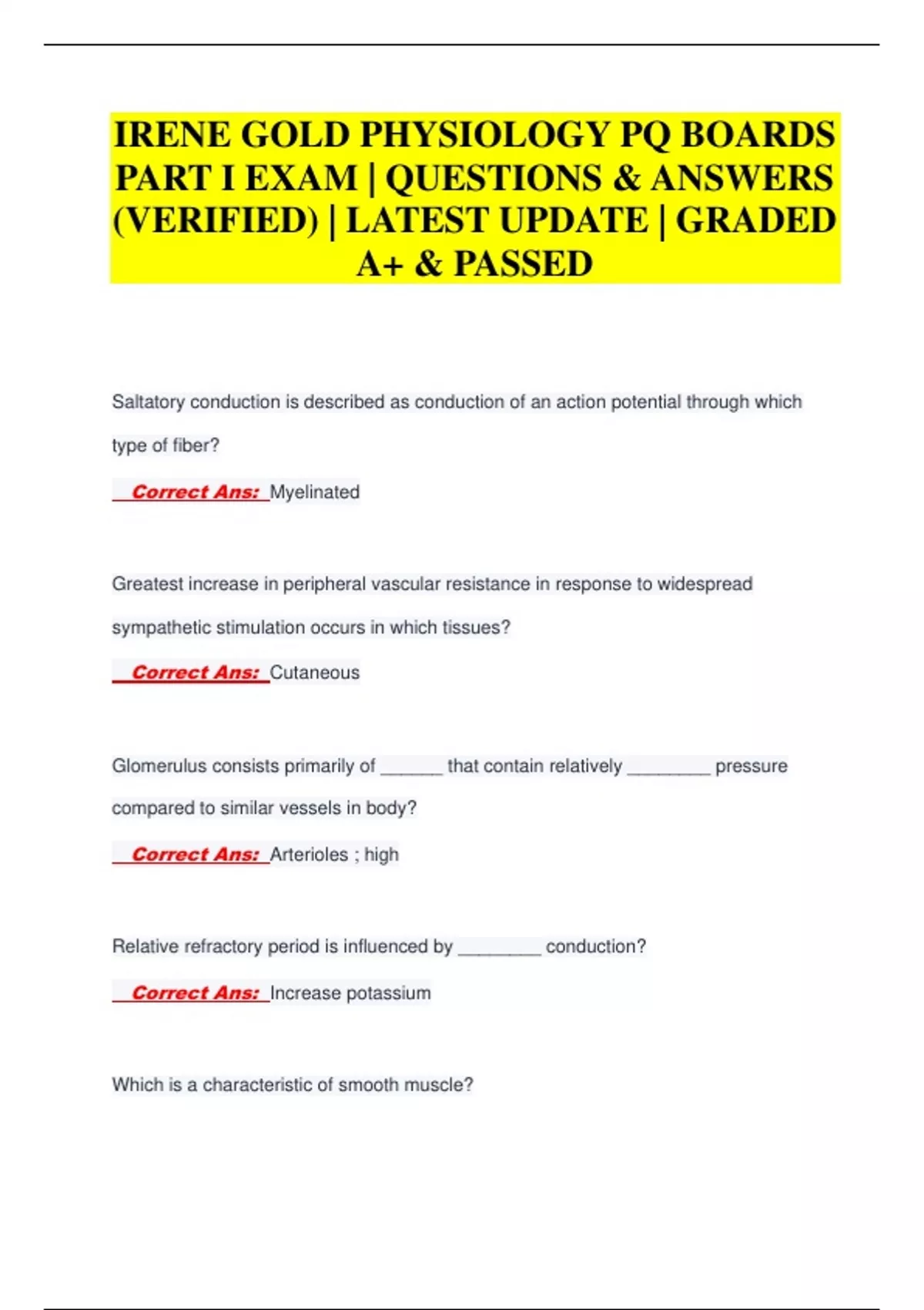 IRENE GOLD PHYSIOLOGY PQ BOARDS PART I EXAM | QUESTIONS & ANSWERS (VERIFIED) | LATEST UPDATE | GRADED A+ & PASSEDIRENE GOLD PHYSIOLOGY PQ BOARDS PART I EXAM | QUESTIONS & ANSWERS (VERIFIED) | LATEST UPDATE | GRADED A+ & PASSEDIRENE GOLD PHYSIOLOGY PQ BOARDS PART I EXAM | QUESTIONS & ANSWERS (VERIFIED) | LATEST UPDATE | GRADED A+ & PASSEDIRENE GOLD PHYSIOLOGY PQ BOARDS PART I EXAM | QUESTIONS & ANSWERS (VERIFIED) | LATEST UPDATE | GRADED A+ & PASSED