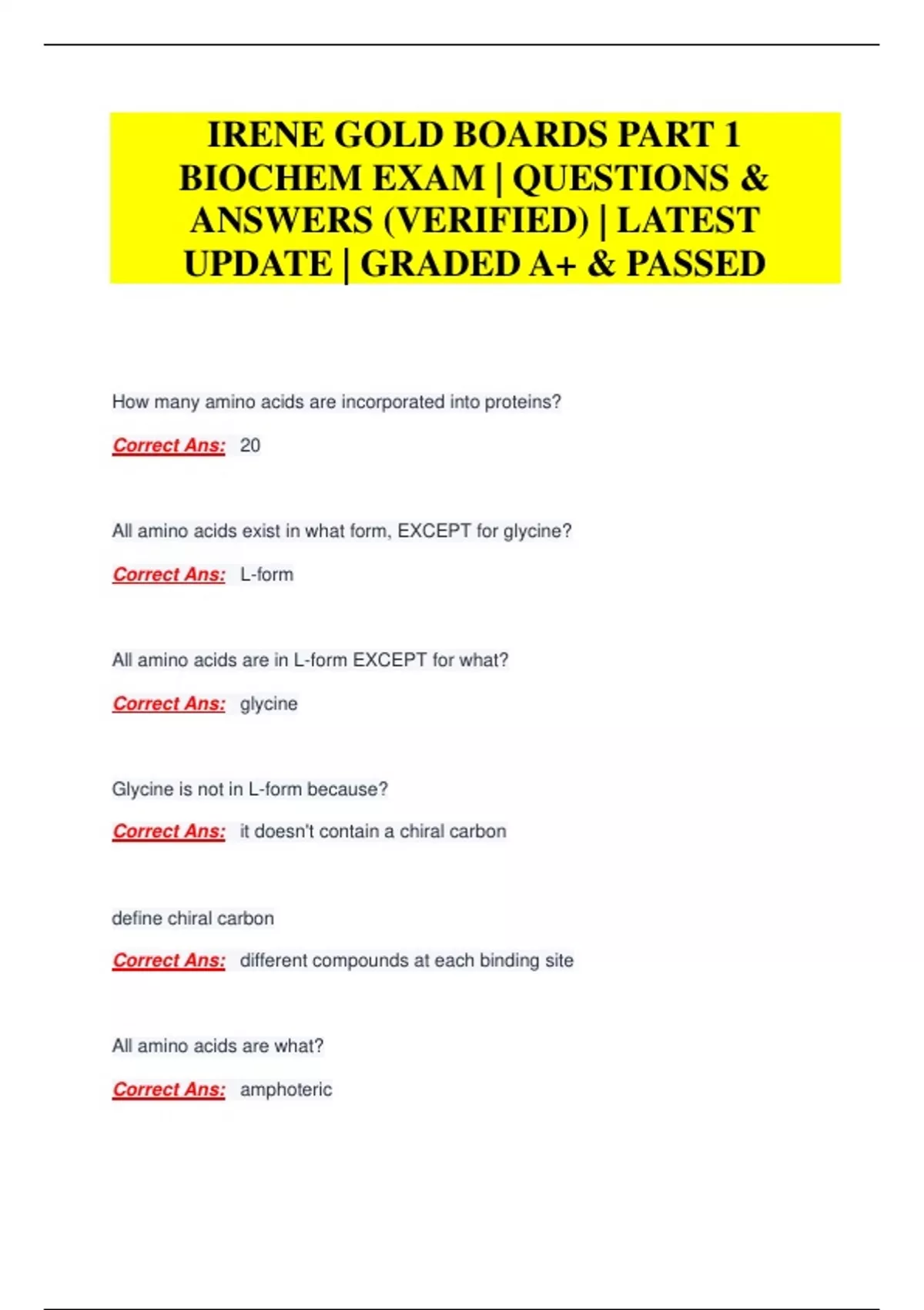 IRENE GOLD BOARDS PART 1 BIOCHEM EXAM | QUESTIONS & ANSWERS (VERIFIED) | LATEST UPDATE | GRADED A+ & PASSED IRENE GOLD BOARDS PART 1 BIOCHEM EXAM | QUESTIONS & ANSWERS (VERIFIED) | LATEST UPDATE | GRADED A+ & PASSED IRENE GOLD BOARDS PART 1 BIOCHEM EXAM | QUESTIONS & ANSWERS (VERIFIED) | LATEST UPDATE | GRADED A+ & PASSED IRENE GOLD BOARDS PART 1 BIOCHEM EXAM | QUESTIONS & ANSWERS (VERIFIED) | LATEST UPDATE | GRADED A+ & PASSED