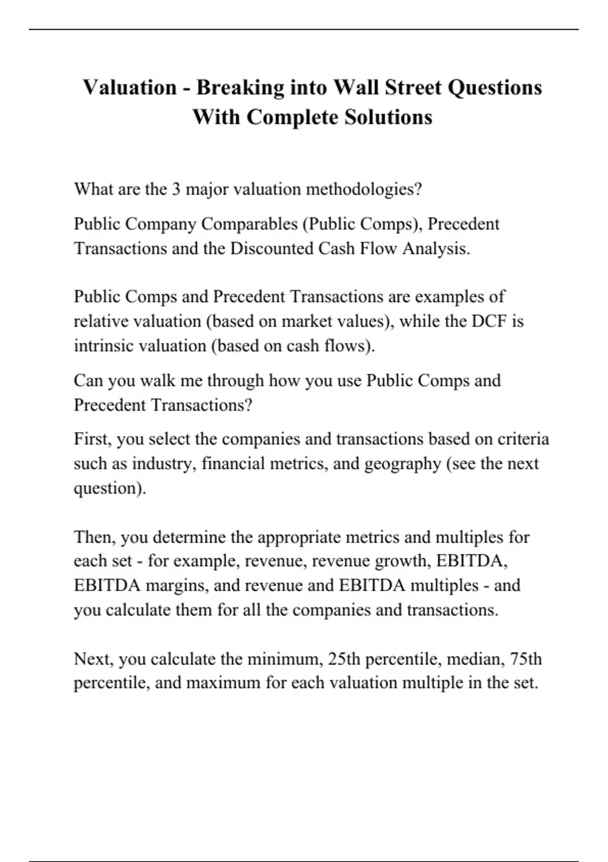 Valuation - Breaking into Wall Street Questions With Complete Solutions