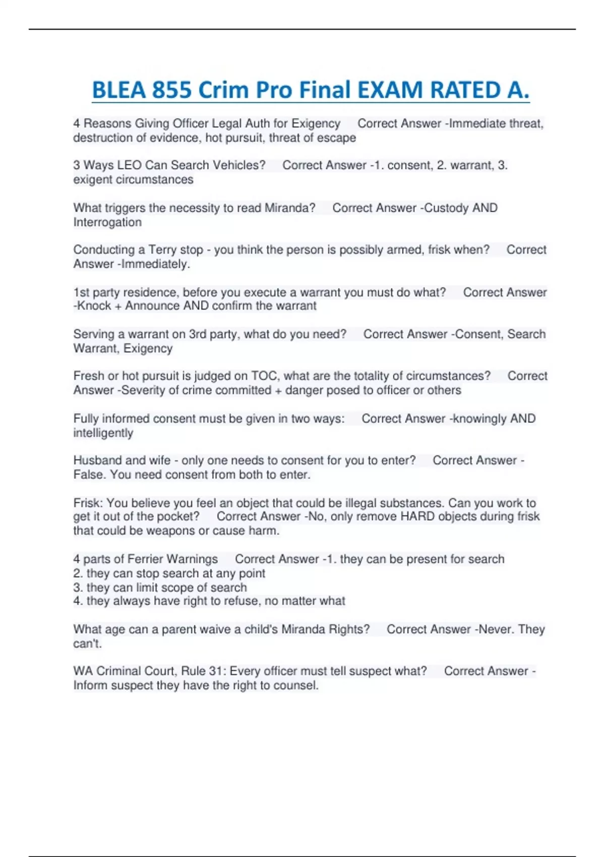 BLEA 855 Crim Pro Final EXAM RATED A.