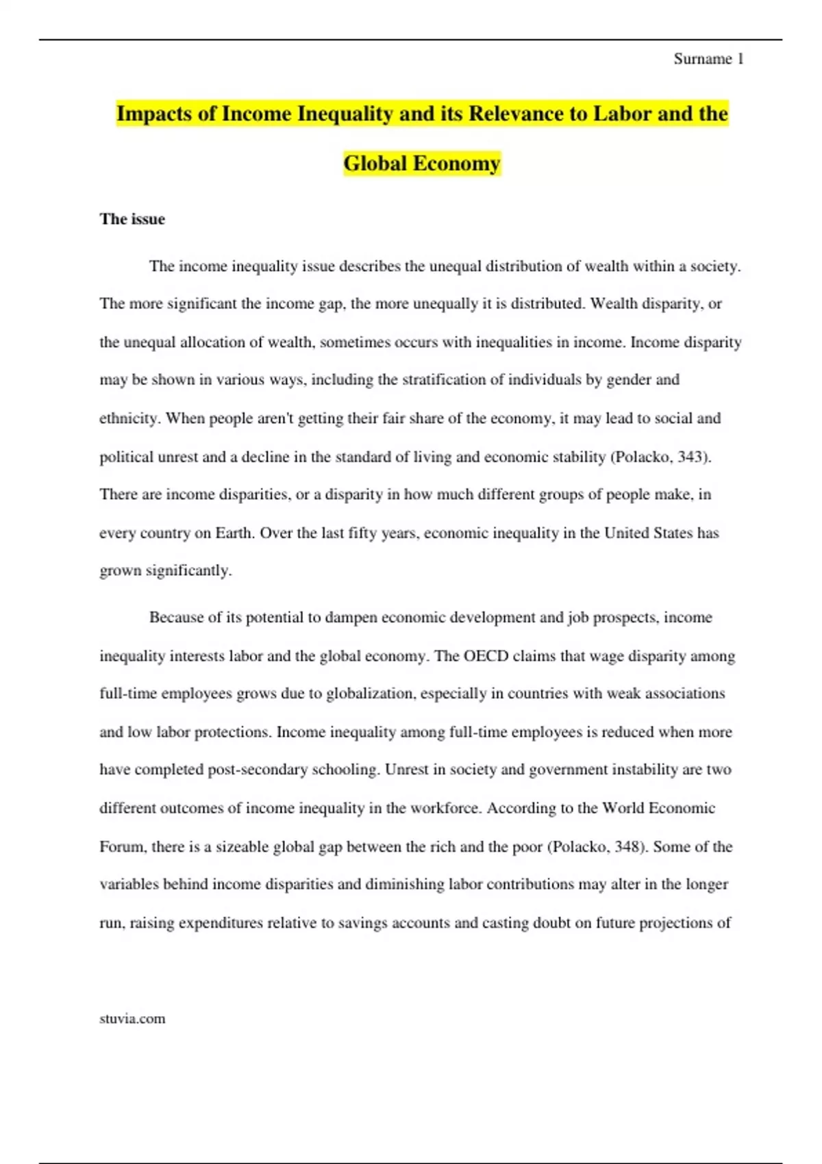 Impacts of Income Inequality and its Relevance to Labor and the Global Economy