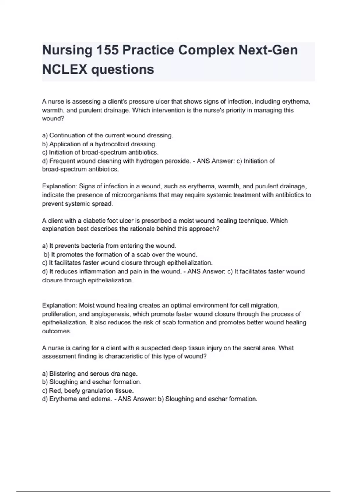 Nursing 155 Practice Complex Next-Gen NCLEX questions & completed solutions.