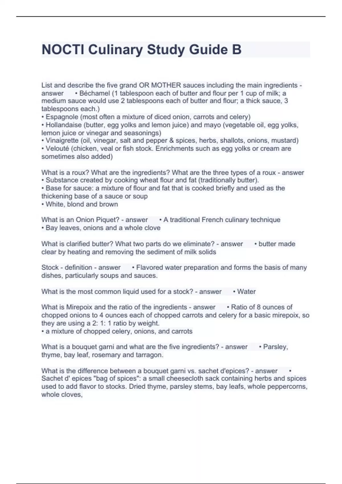 NOCTI Culinary Study Guide B Questions and Answers Graded A