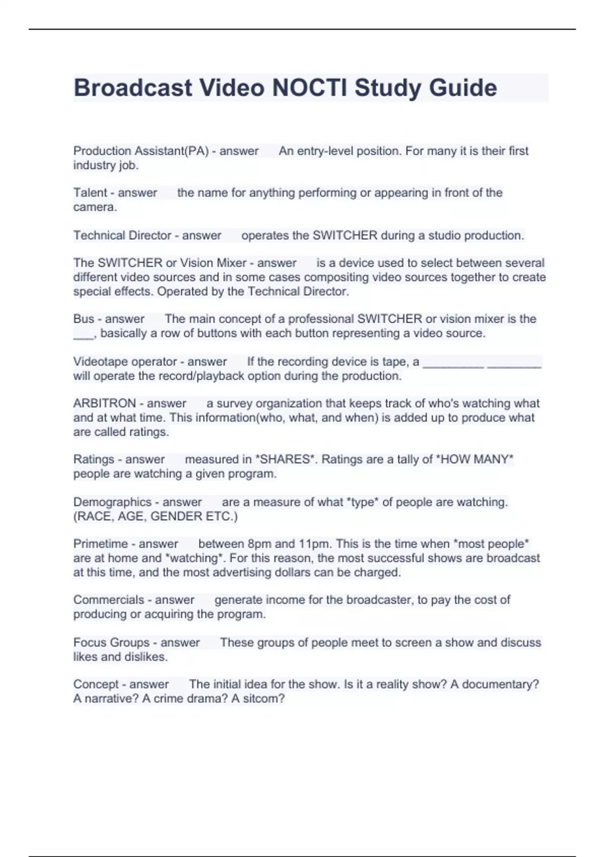 Broadcast Video NOCTI Study Guide