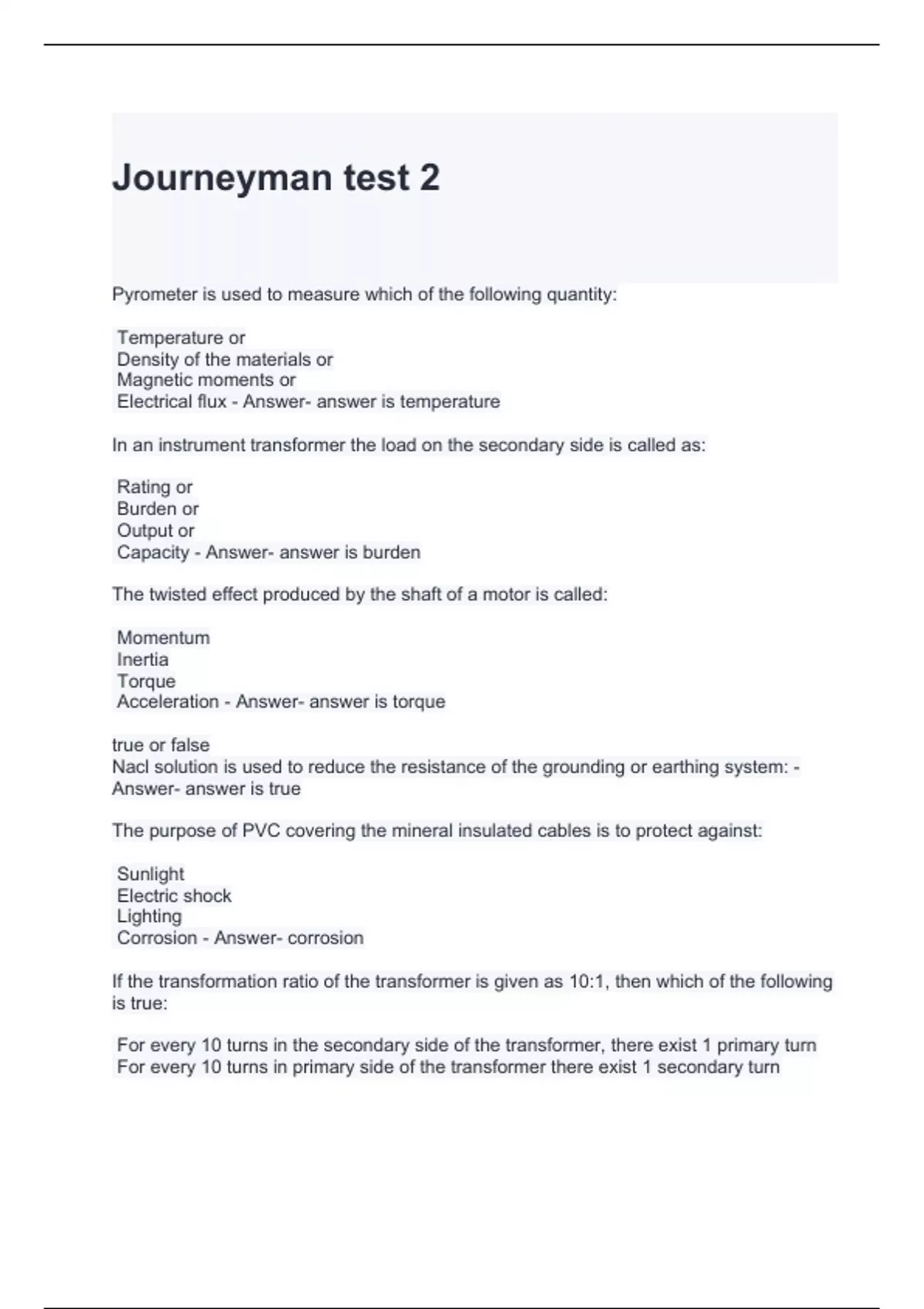 Exam of 3 pages for the course Journeyman Electrician at Journeyman Electrician (Journeyman test 2)