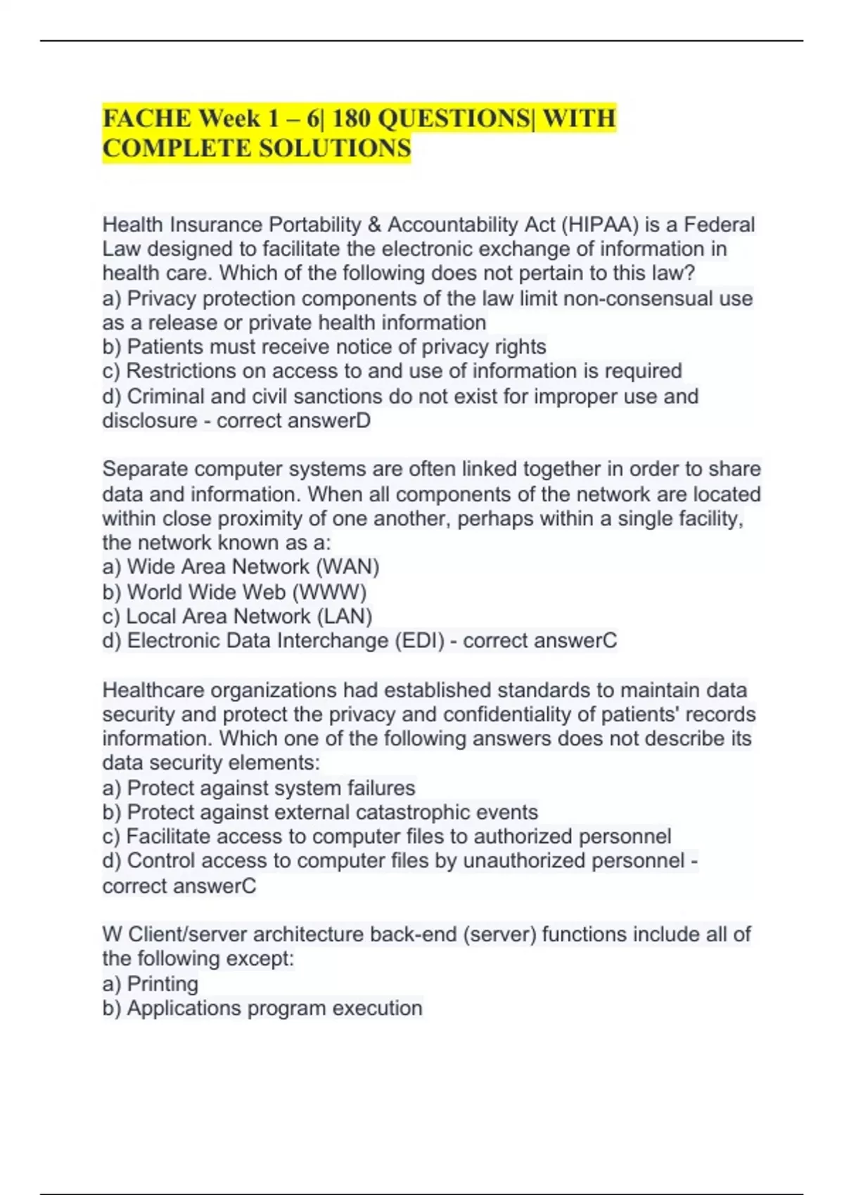 d) Use of HIPAA compliant software - correct answerC