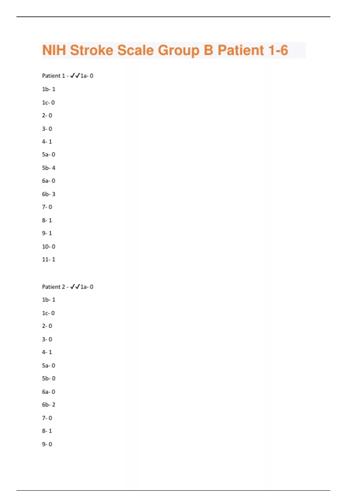 NIH Stroke Scale Group B Patient 1-6 Questions and Answers Solved 100% Correct!!