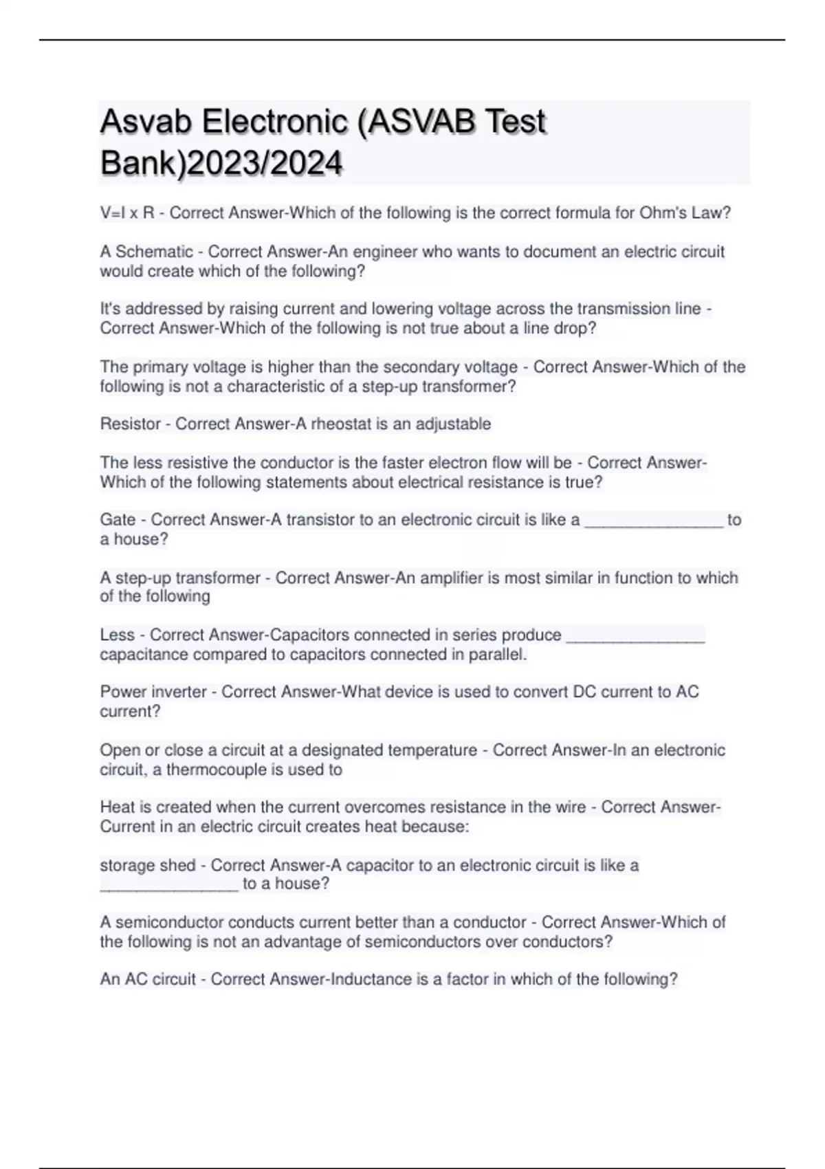 Asvab Electronic (ASVAB Test Bank)2023/2024