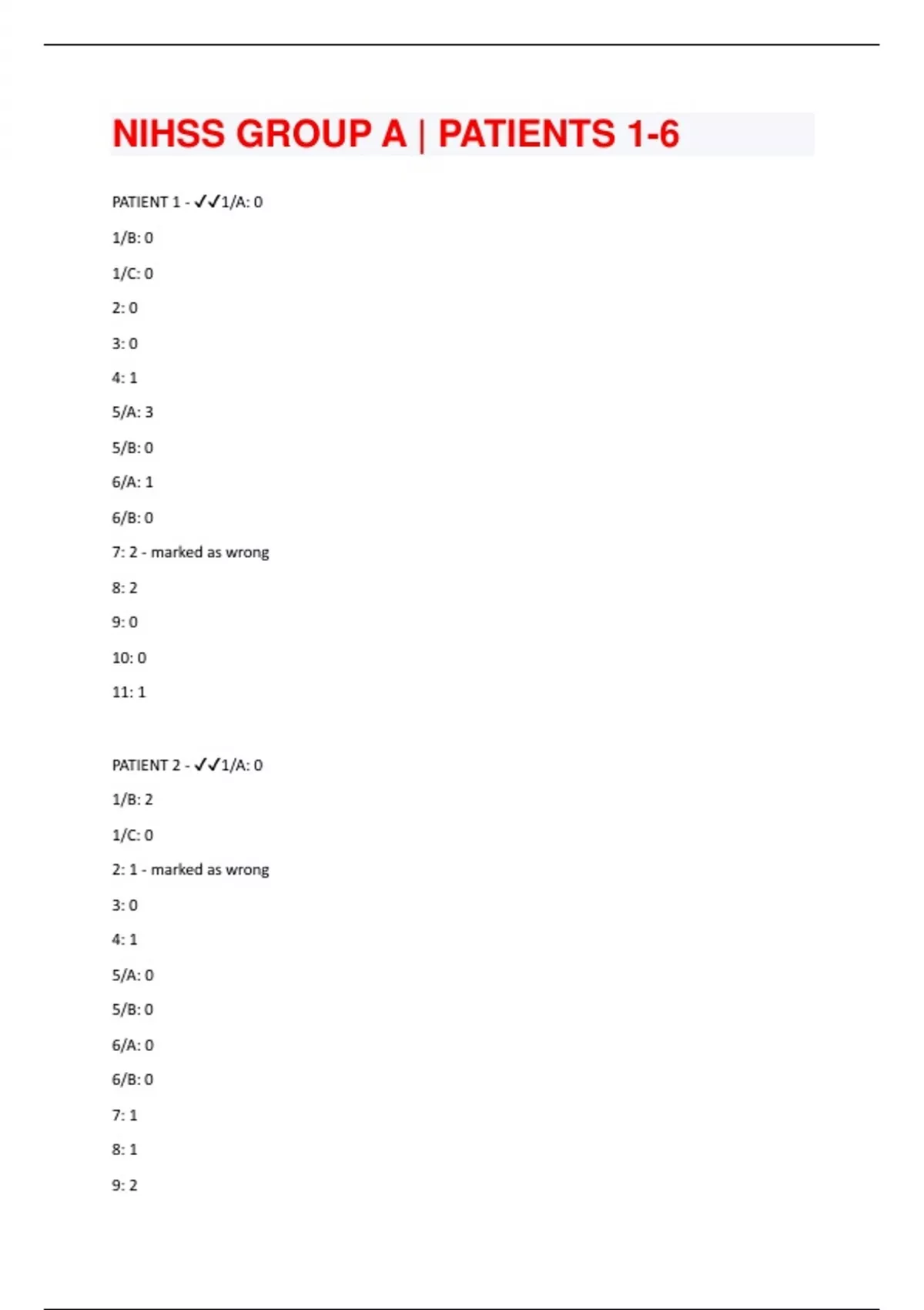 NIHSS GROUP A | PATIENTS 1-6 QUESTIONS WITH 100 % CORRECT ANSWERS| VERIFIED